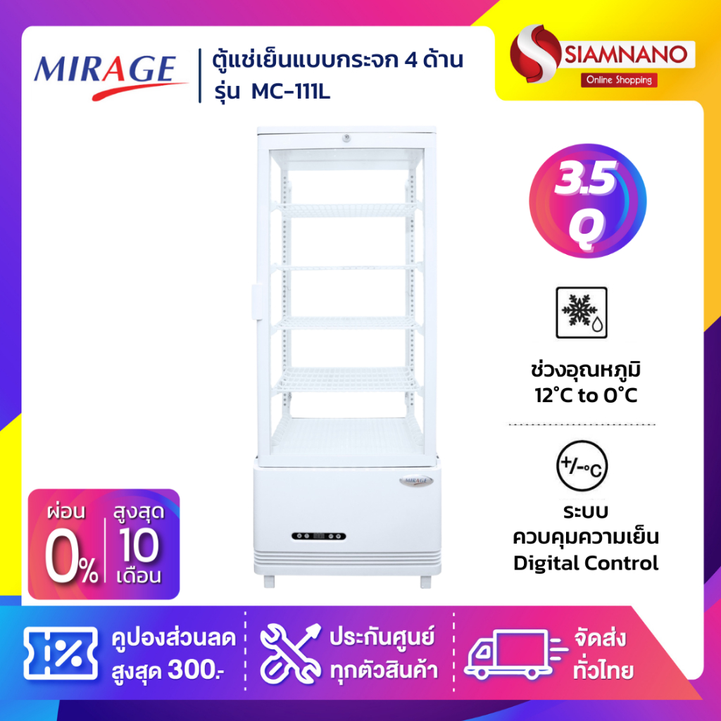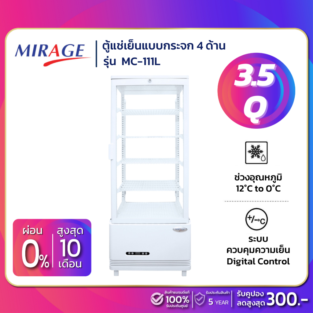 ตู้แช่เย็นแบบกระจก 4 ด้าน / ตู้แช่เค้ก Mirage รุ่น MC-111L ขนาด 3.5Q / 98 ลิตร ( รับประกันนาน 5 ปี )