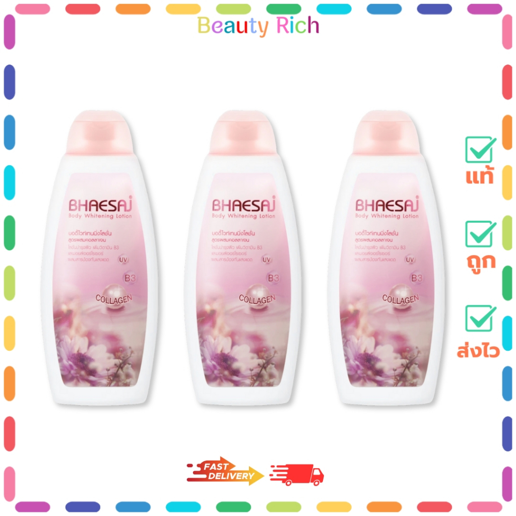 (แพ็ค 3 ขวด) Bhaesaj Body Whitening Lotion (สีชมพู) เภสัช บอดี้ ไวท์เทนนิ่งโลชั่น (250 ml.)
