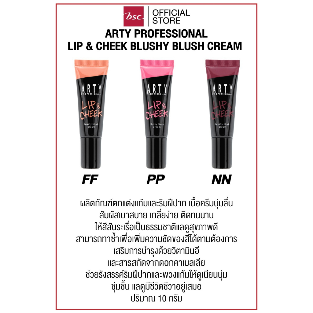 ARTY PROFESSIONAL LIP & CHEEK BLUSHY BLUSH CREAM อาร์ทตี้ โปรเฟสชั่นแนล ลิป แอนด์ ชีค บลัชชี่ บลัช ครีม ผลิตภัณฑ์ตกแต่งแก้มและริมฝีปาก เนื้อครีมนุ่มลื่น สัมผัสเบาสบาย