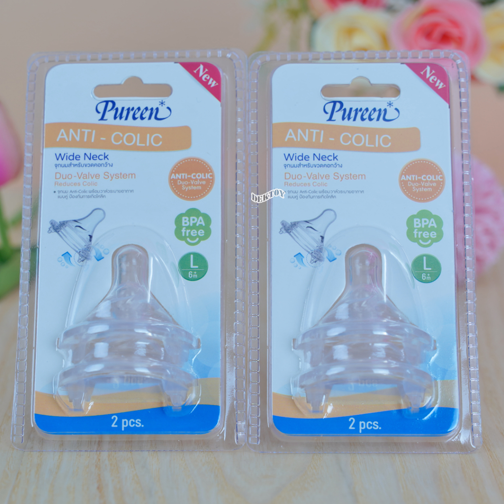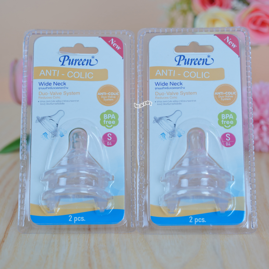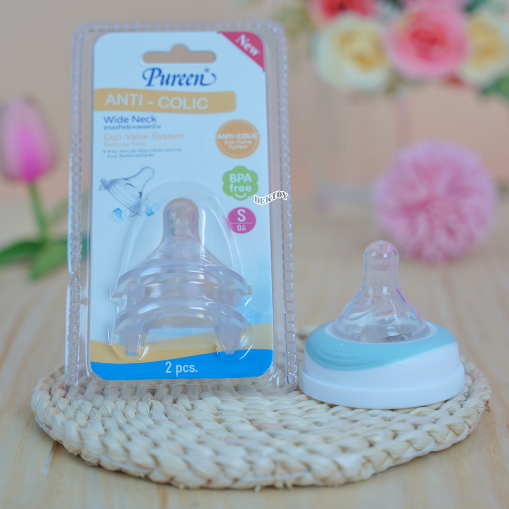 1 แถม1 Pureen เพียวรีน จุกนมคอกว้างเสมือนนมแม่ Anti Colic แพ็ค2ชิ้น