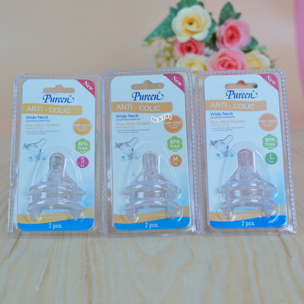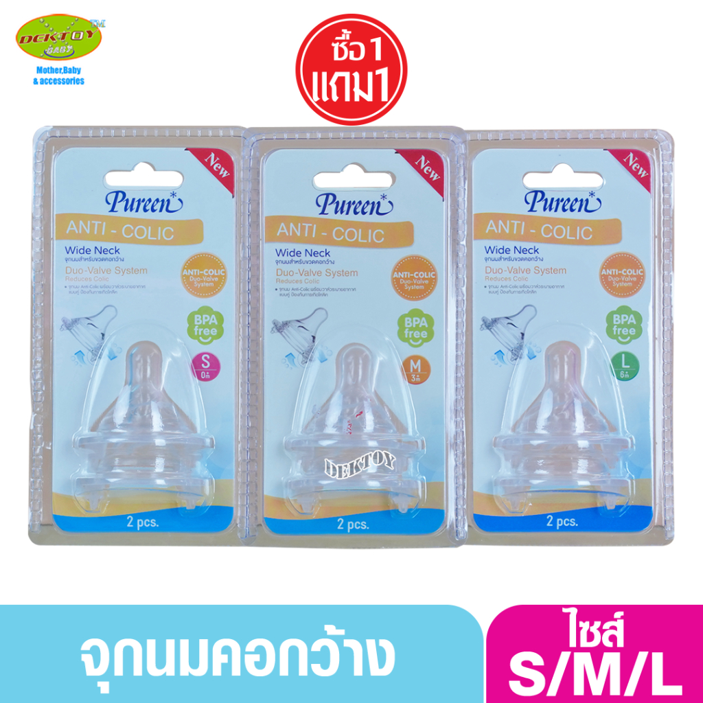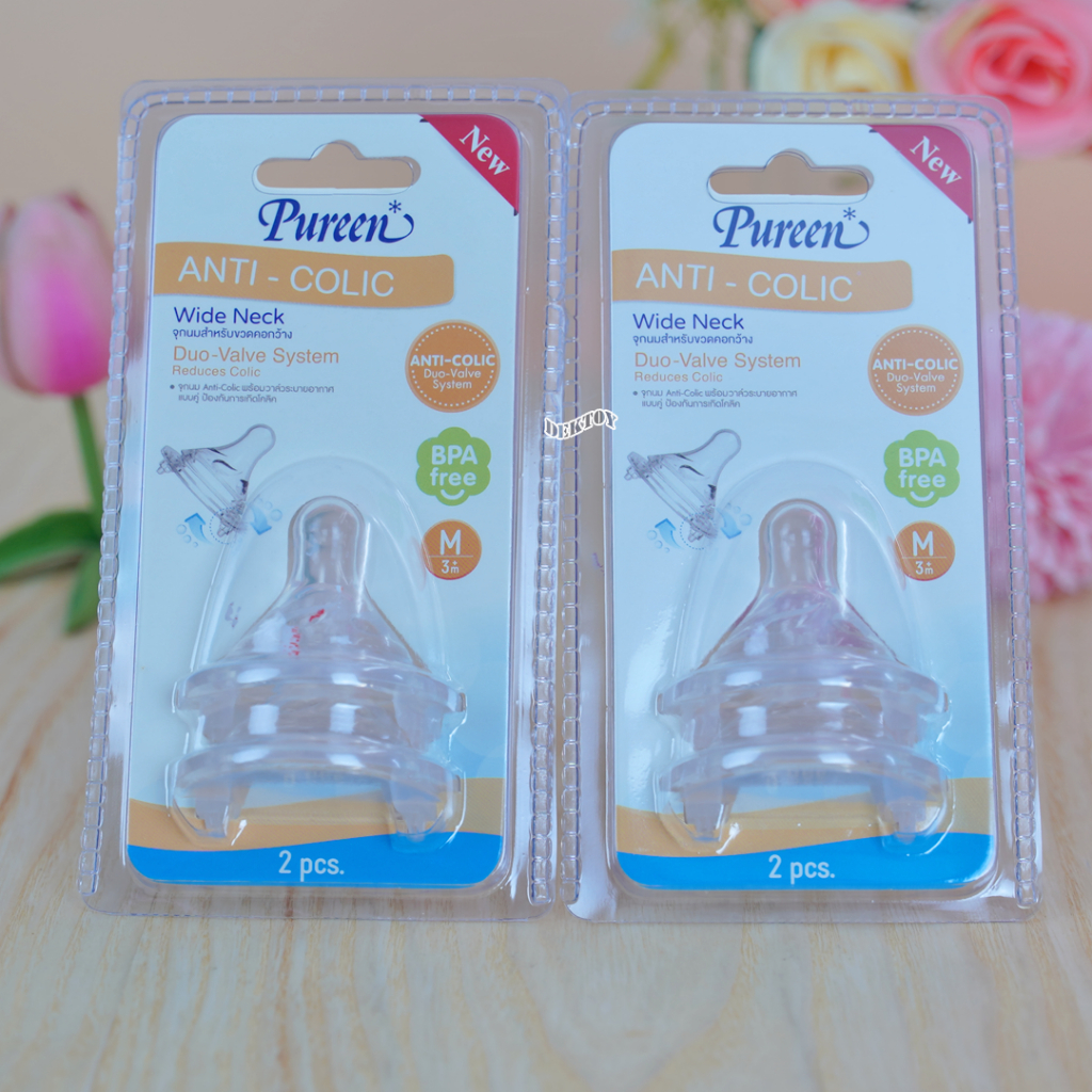 1 แถม1 Pureen เพียวรีน จุกนมคอกว้างเสมือนนมแม่ Anti Colic แพ็ค2ชิ้น