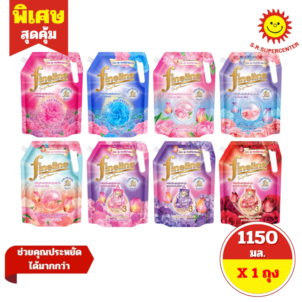 [ 1 ถุง ] Fineline ไฟน์ไลน์ ผลิตภัณฑ์ปรับผ้านุ่มสูตรเข้มข้น ขนาด 1150 มล. 8 สูตร[FX TECH]