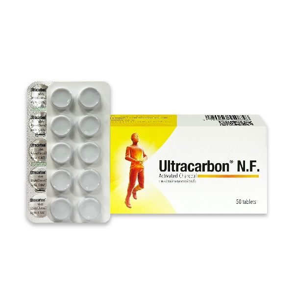 Ultracarbon N.F. อุลตราคาร์บอน เอ็น.เอฟ. ผงถ่านสำหรับอาการท้องเสีย 1 แผง 22949