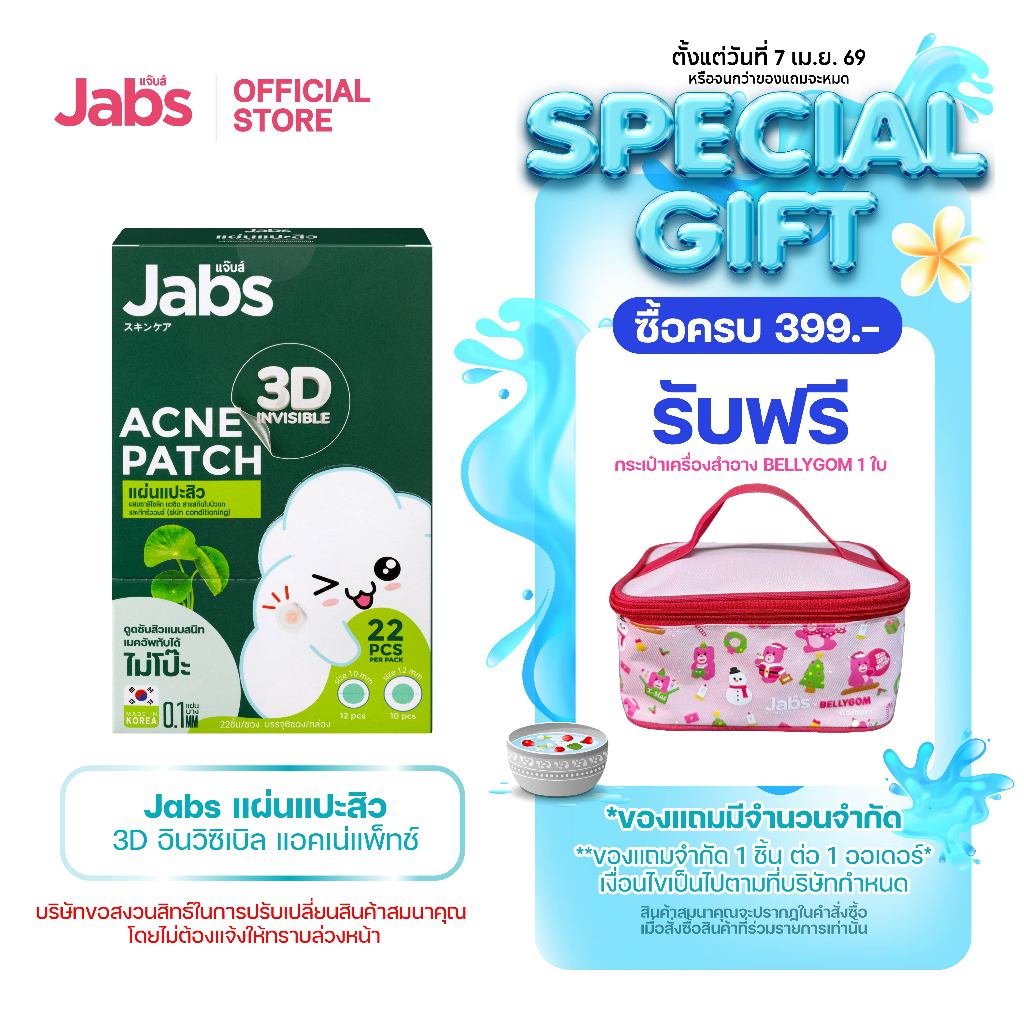 Jabs แผ่นแปะสิว 3D อินวิซิเบิล แอคเน่แพ็ทช์ x 1 กล่อง (6ซอง)