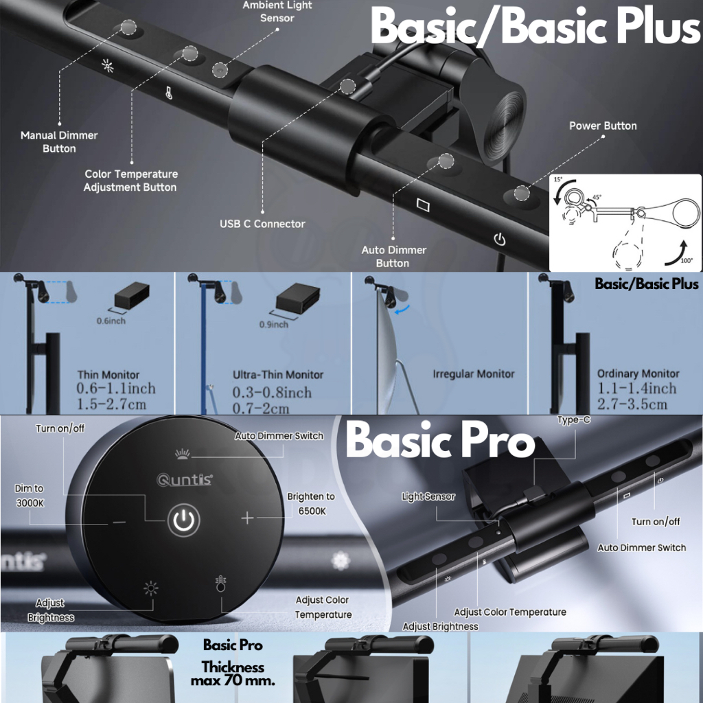 Quntis ScreenLinear Auto Series Monitor Light Bar โคมไฟแขวนจอคอม ปรับแสงอัตโนมัติ ถนอมสายตา ไฟอ่านหนังสือ