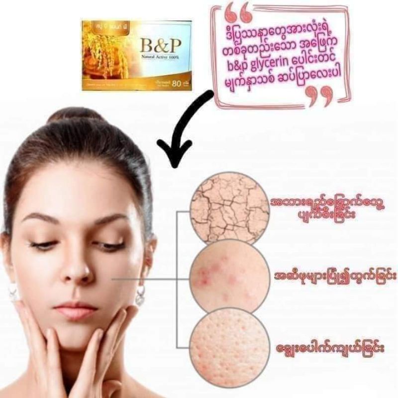 B&P Organic Rice Soap(สบู่ล้างหน้าธรรมชาติ)သဘာဝမျက်နှာသစ်ဆပ်ပြာ