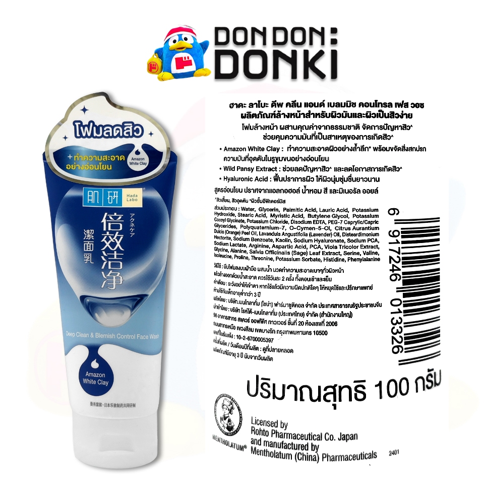 ฮาดะ ลาโบ โฟมล้างหน้าผสานคุณค่าจากธรรมชาติ ช่วยกระชับรูขุมขนและคุมความมัน Hada Labo Deep Clean and Blemish Control Face