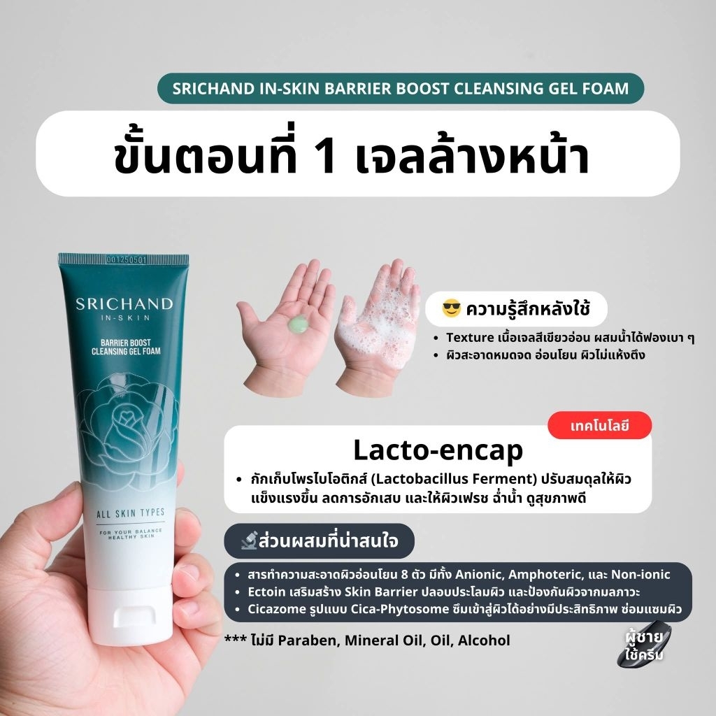 Srichand Barrier Boost Cleansing Gel Foam 50ml ศรีจันทร์ แบริเออร์ บูสต์ คลีนซิ่ง เจล โฟม 50ml
