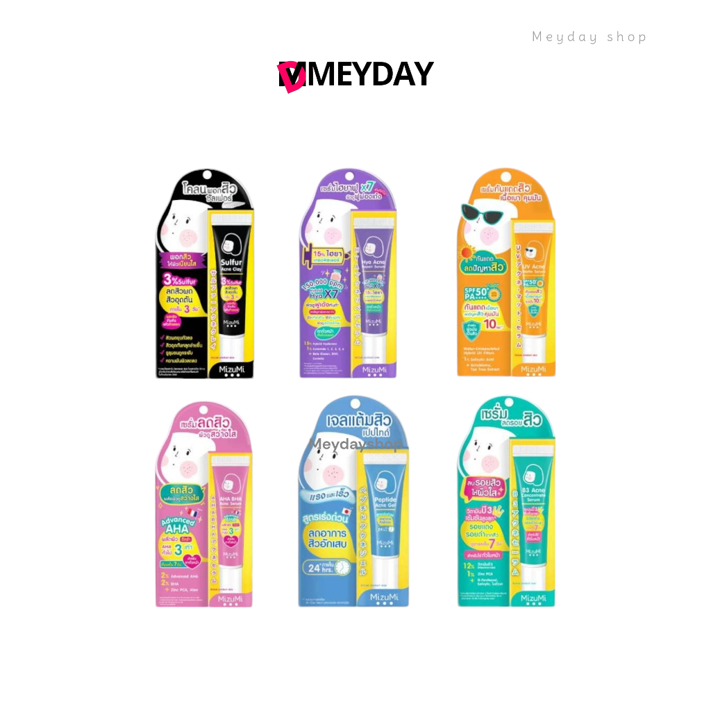 (แบบหลอด) MizuMi มิซึมิเซรั่มลดรอยสิว/เจลแต้มสิว/โคลนพอก/กันแดด SPF50 PA++++