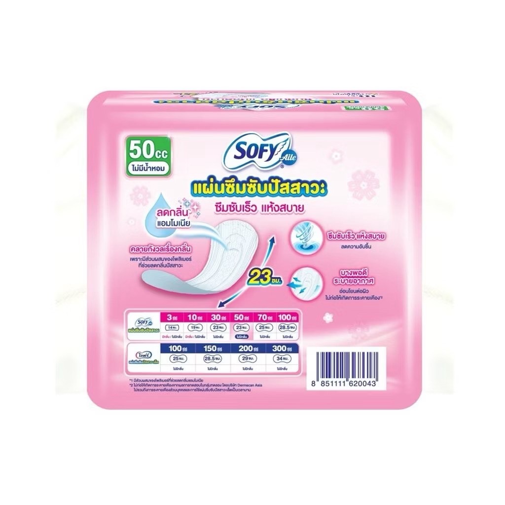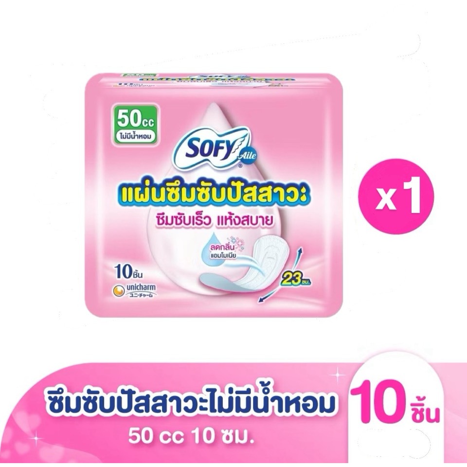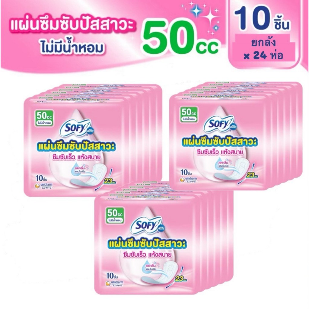 Sofy โซฟี แผ่นซึมซับปัสสาวะแบบมีกลิ่นหอม ขนาด 50 ซีซี - 23 cm. (ยกลัง 24 ห่อ)