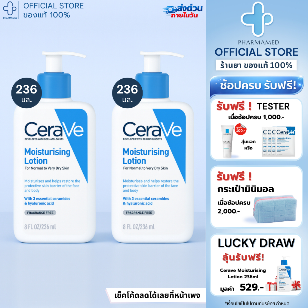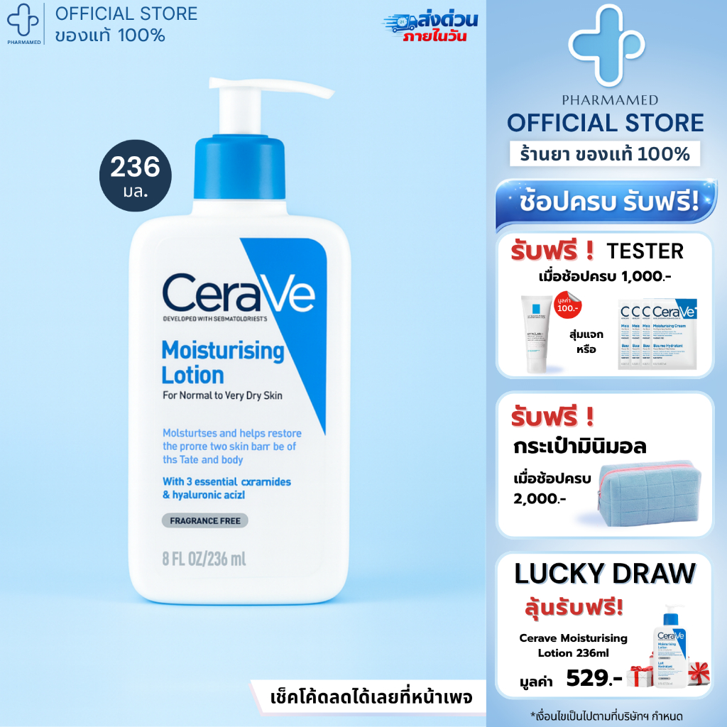 CERAVE Moisturising Lotion 236ml. เซราวี มอยเจอร์ไรซิ่ง โลชั่นบำรุงผิว สำหรับผิวธรรมดา ผิวมัน