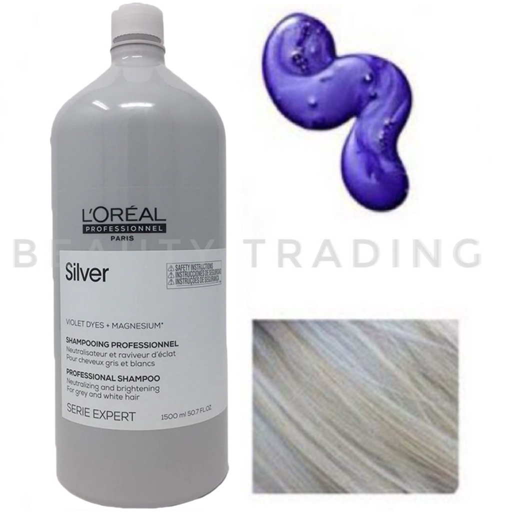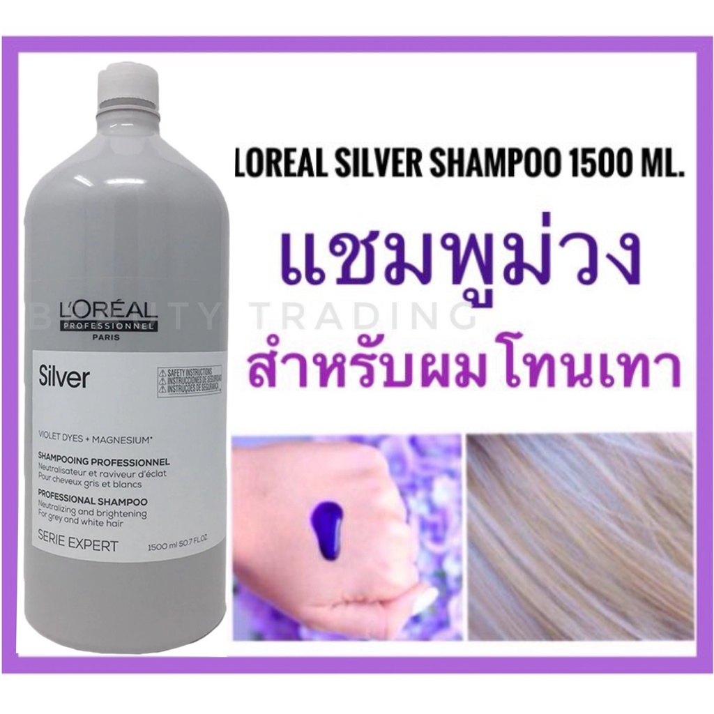 ลอรีอัล แชมพูม่วง ฆ่าเหลือง ฟรีหัวปั๊ม แชมพู ผมโทนเทา Loreal Serie Expert Silver Shampoo 1500ml. ซิลเวอร์ แชมพู บลอนด์
