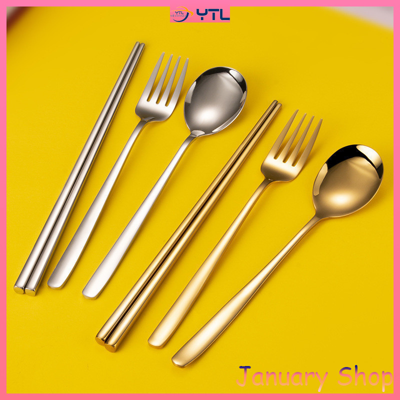 ช้อน&ส้อม ชุดช้อนส้อม เกาหลีแสตนเลส 1คู่ ยาว 21ซมเนื้อสแตนเลสตัน ชุดช้อนเกาหลี
