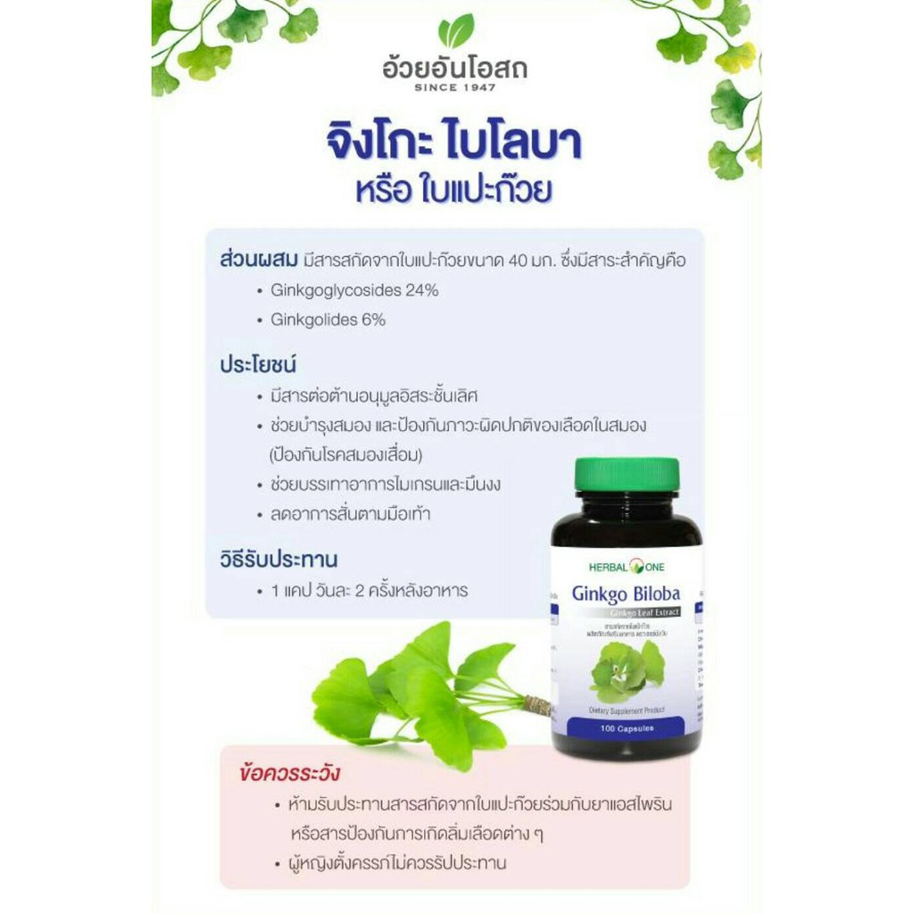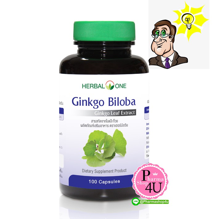 Herbal One Ginkgo Biloba อ้วยอันโอสถ สารสกัดจากใบ แป๊ะก๊วย100 แคปซูล Gingko [6609]