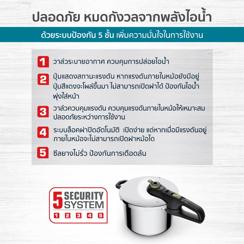 ทีฟาล์ว หม้ออัดแรงดัน 4 ลิตร รุ่น SECURE TRENDY P2580400 TEFAL COOK PREASURE SECURE TRENDY 4 LT.