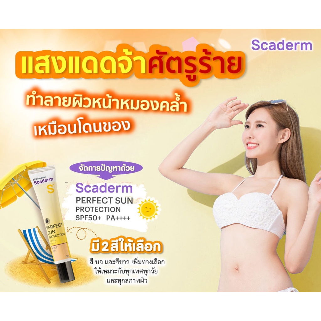 Scaderm Perfect Sun Protection (สีเบจ/สีขาว) SPF50+/PA++++30 กันแดด ครีมกันแดดเนื้อมูส