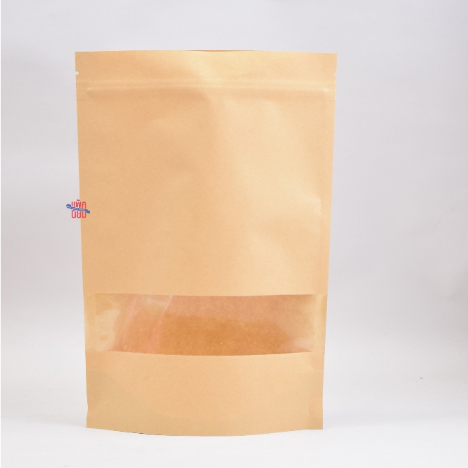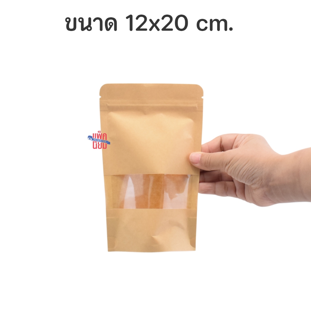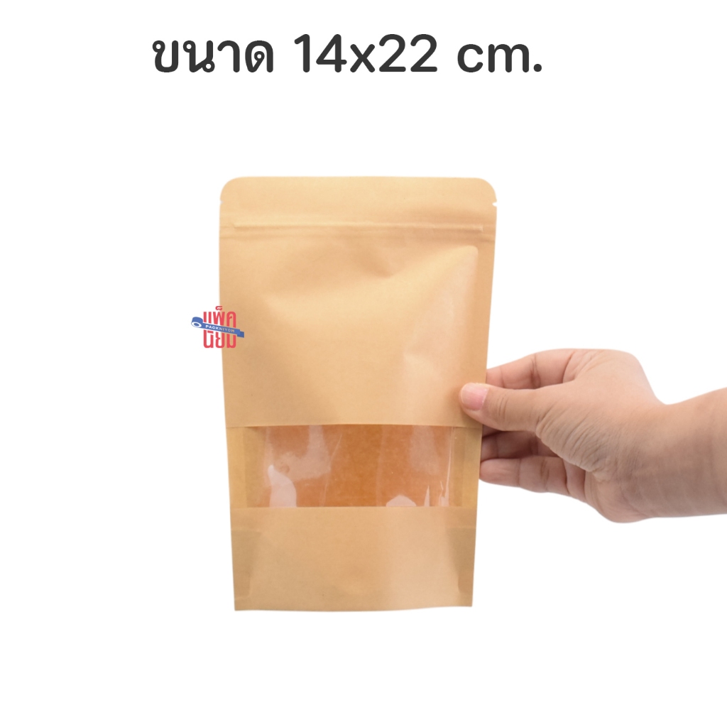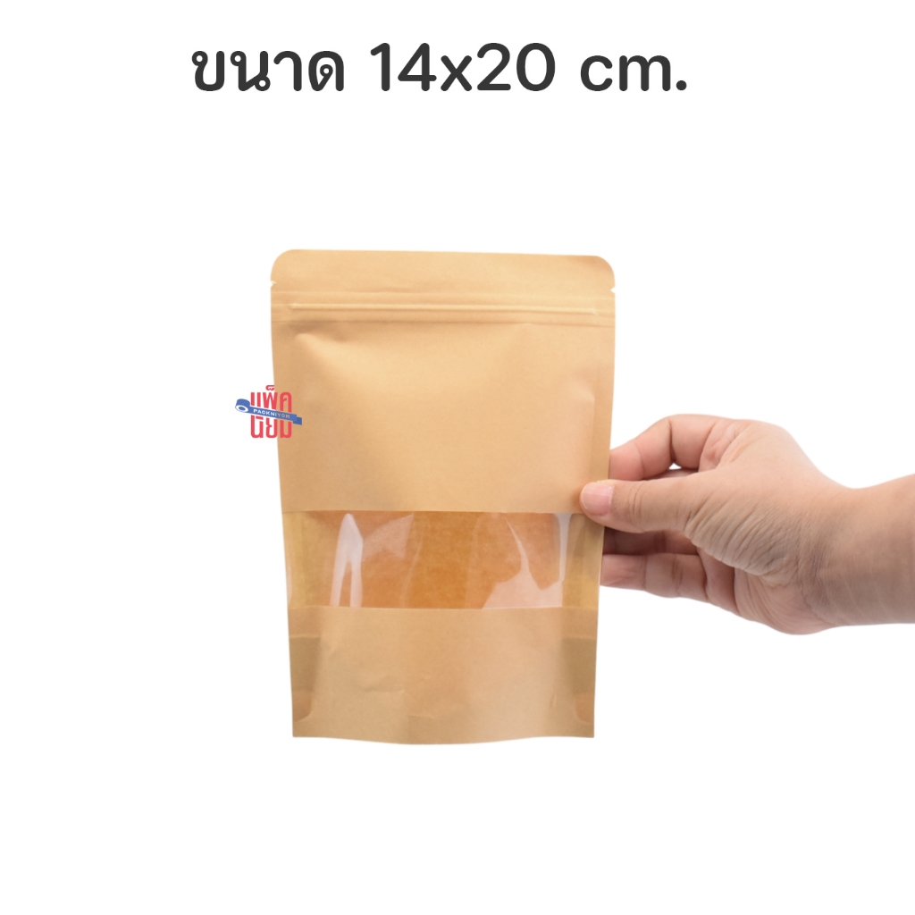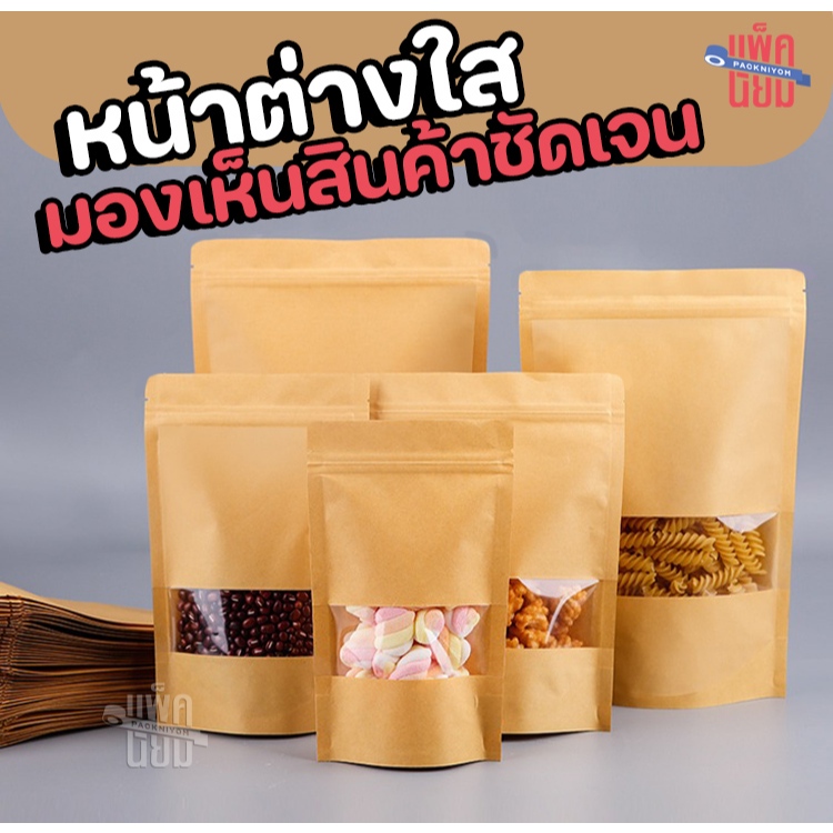 ถุงคราฟท์ หน้าต่างใส ถุงซิป ตั้งได้ (50ใบ) Bag ถุงขนม ซองขนม