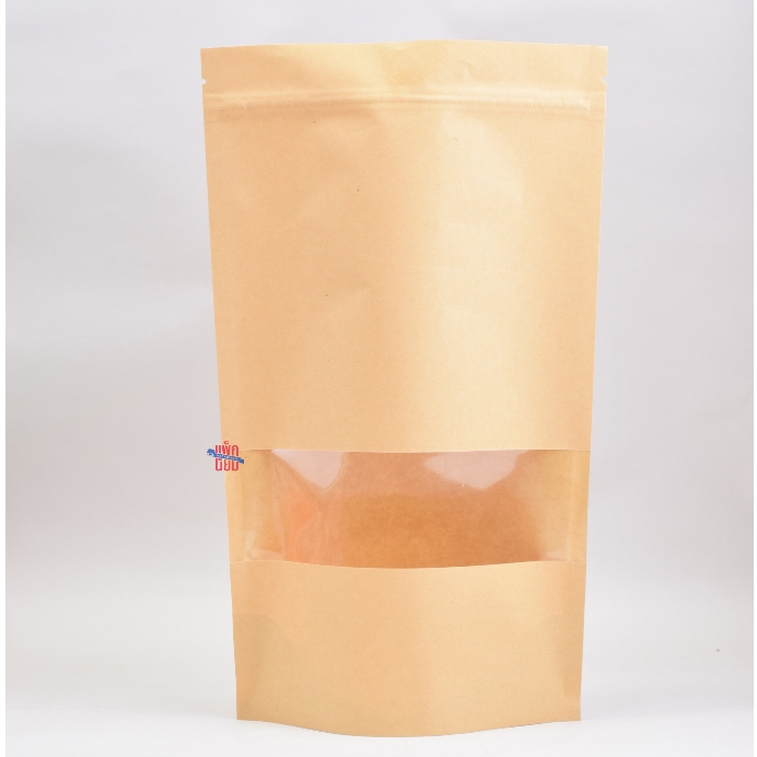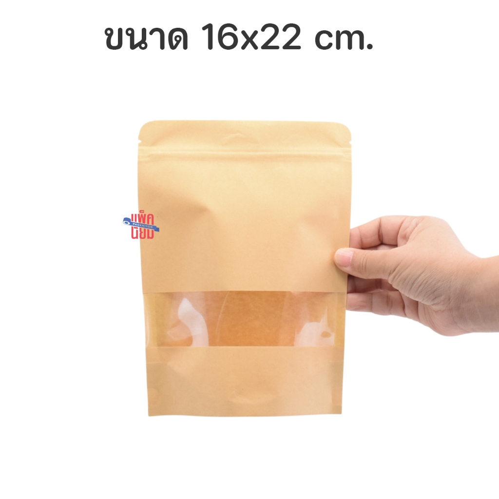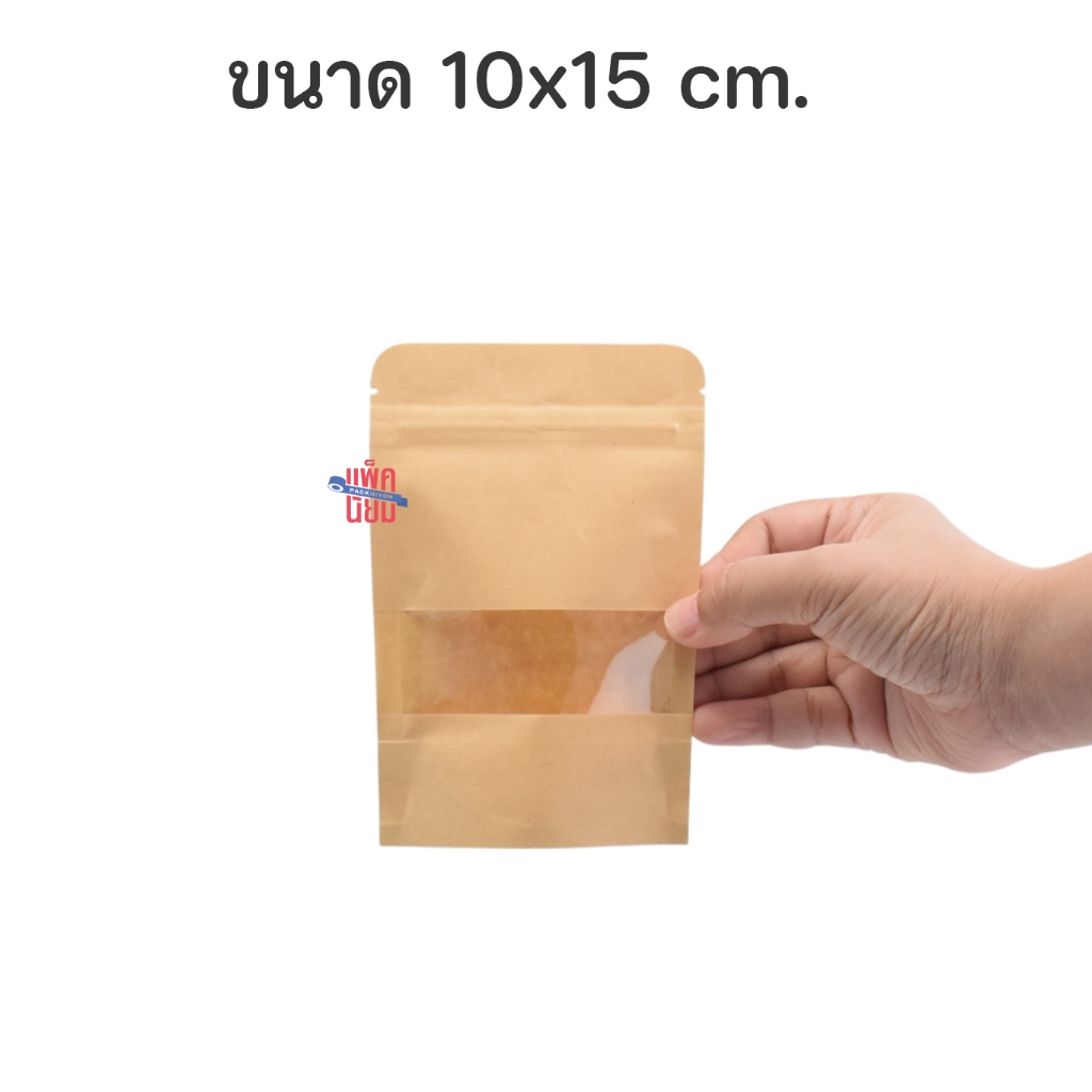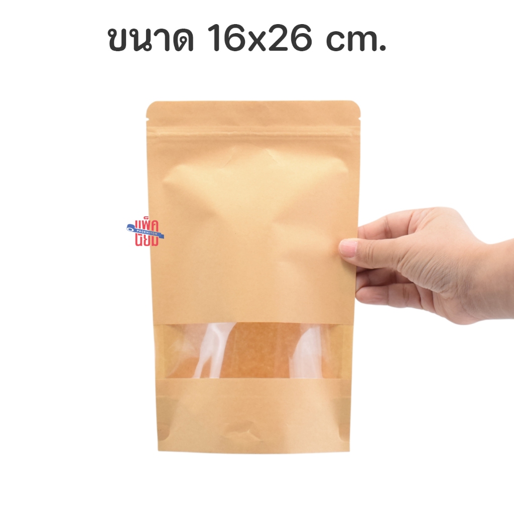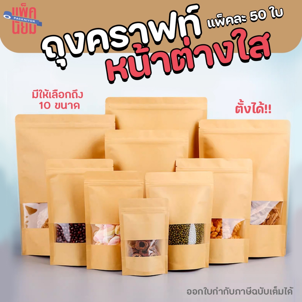 ถุงคราฟท์ หน้าต่างใส ถุงซิป ตั้งได้ (50ใบ) Bag ถุงขนม ซองขนม