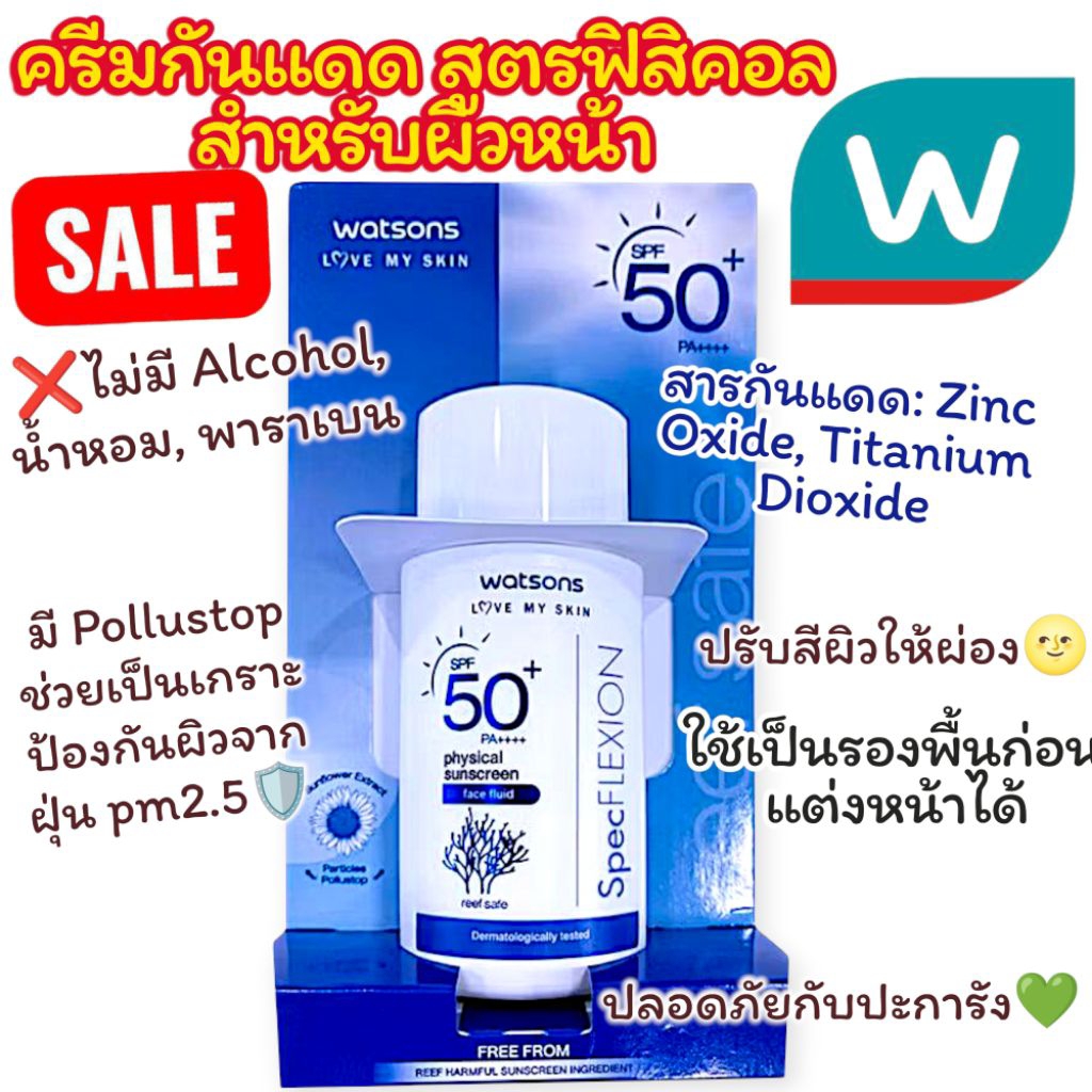 วัตสัน ครีมกันแดดสำหรับผิวหน้าสูตรฟิสิคอลเนื้อบางเบา ซันสกรีน เฟส ฟลูอิด เอสพีเอฟ 50+ พีเอ++++ 30มล.