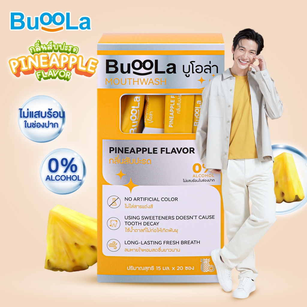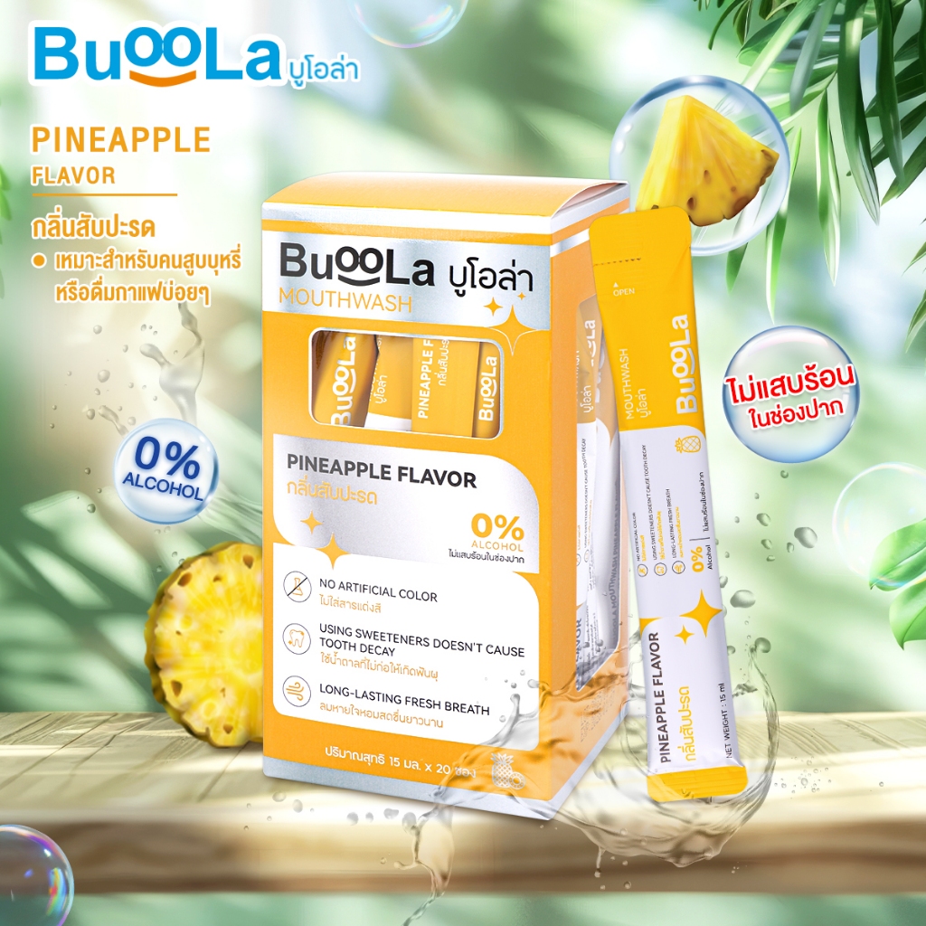 [แบบซองพกพา 1 กล่อง 20 ซอง] Buoola น้ำยาบ้วนปาก (กลิ่นสับปะรด) ช่วยให้ปากหอม สะอาด ลดกลิ่นปาก
