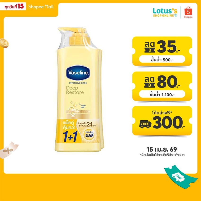 [แพ็คคู่] วาสลีน อินเทนซีฟ แคร์ ดีพ รีสโตร์ โลชั่น 300 มล. VASELINE BODY LOTION-WHITENING DEEP RESTORE 300 ML.