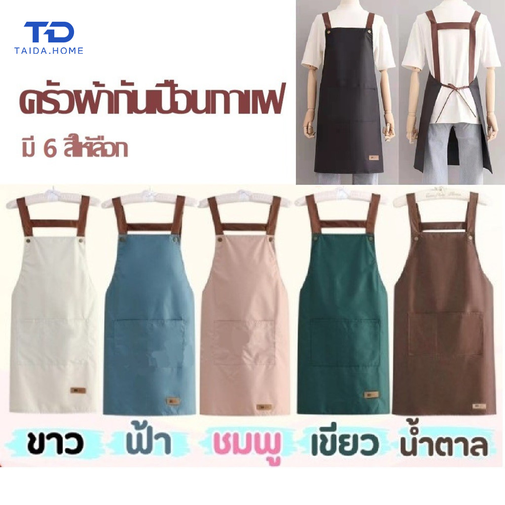 ผ้ากันเปื้อนมีสไตล์ ผ้าใบกันน้ำ ผ้ากันเปื้อนทำงานของช่างทำผมคาเฟ่ ผ้ากันเปื้อนสำหรับทำอาหารในครัว ทนคราบ และทนทาน