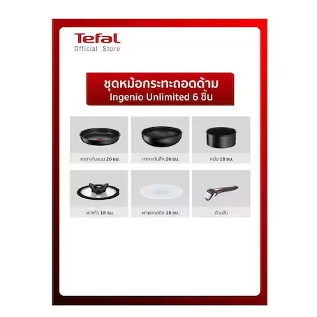 TEFAL ชุดเครื่องครัวกระทะถอดด้าม 6 ชิ้น Ingenio Unlimited รุ่น L7819022 สีดำ