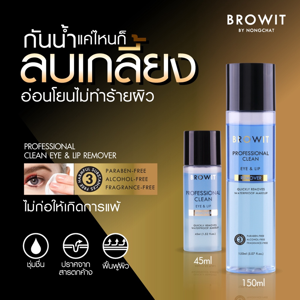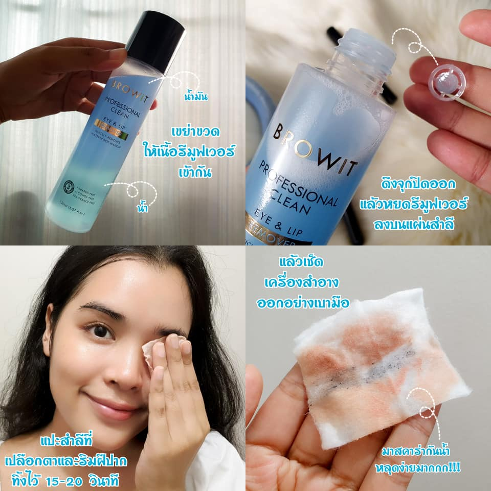 【น้องฉัตร】รีมูฟเวอร์ เช็ดเครื่องสำอาง【เช็ดเมคอัพกันน้ำ】BROWIT PROFESSIONAL CLEAN EYE & LIP REMOVER