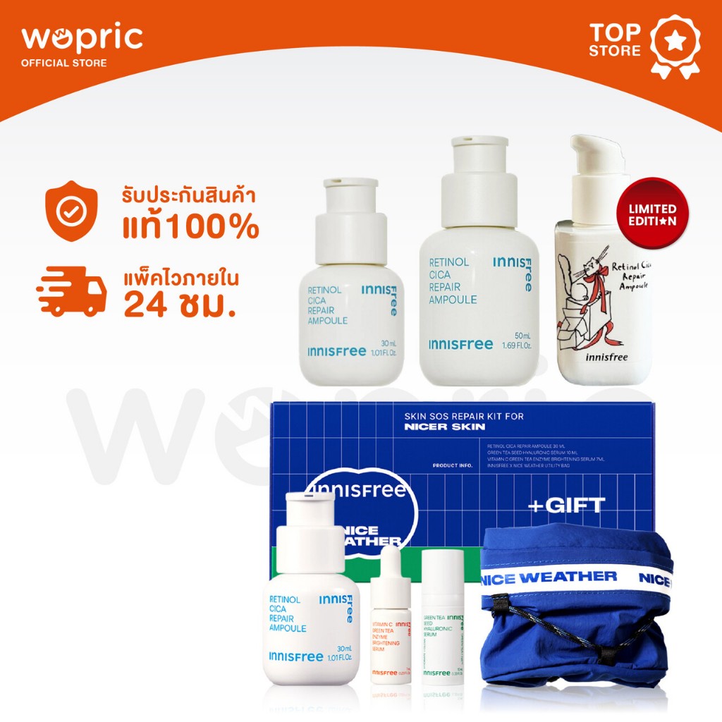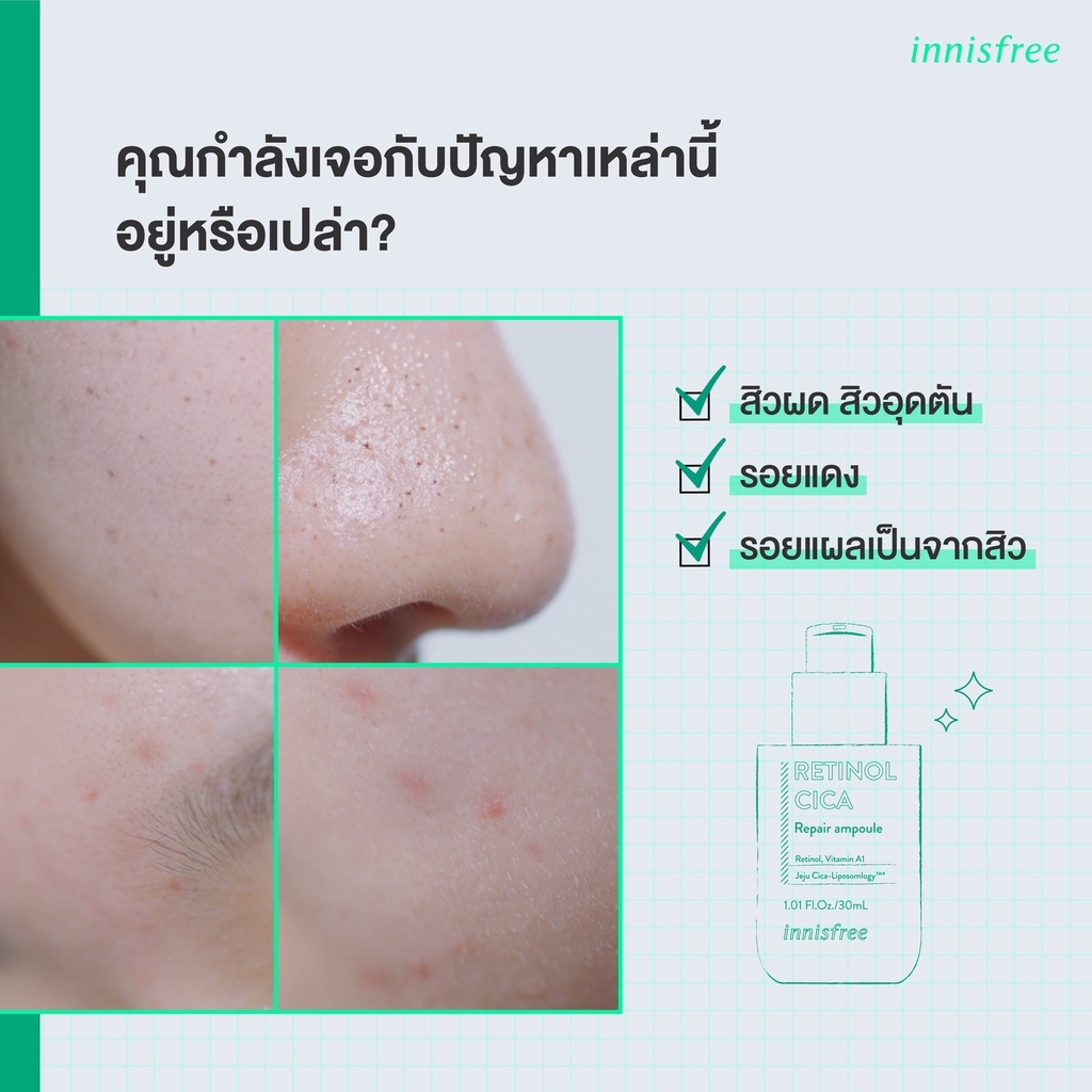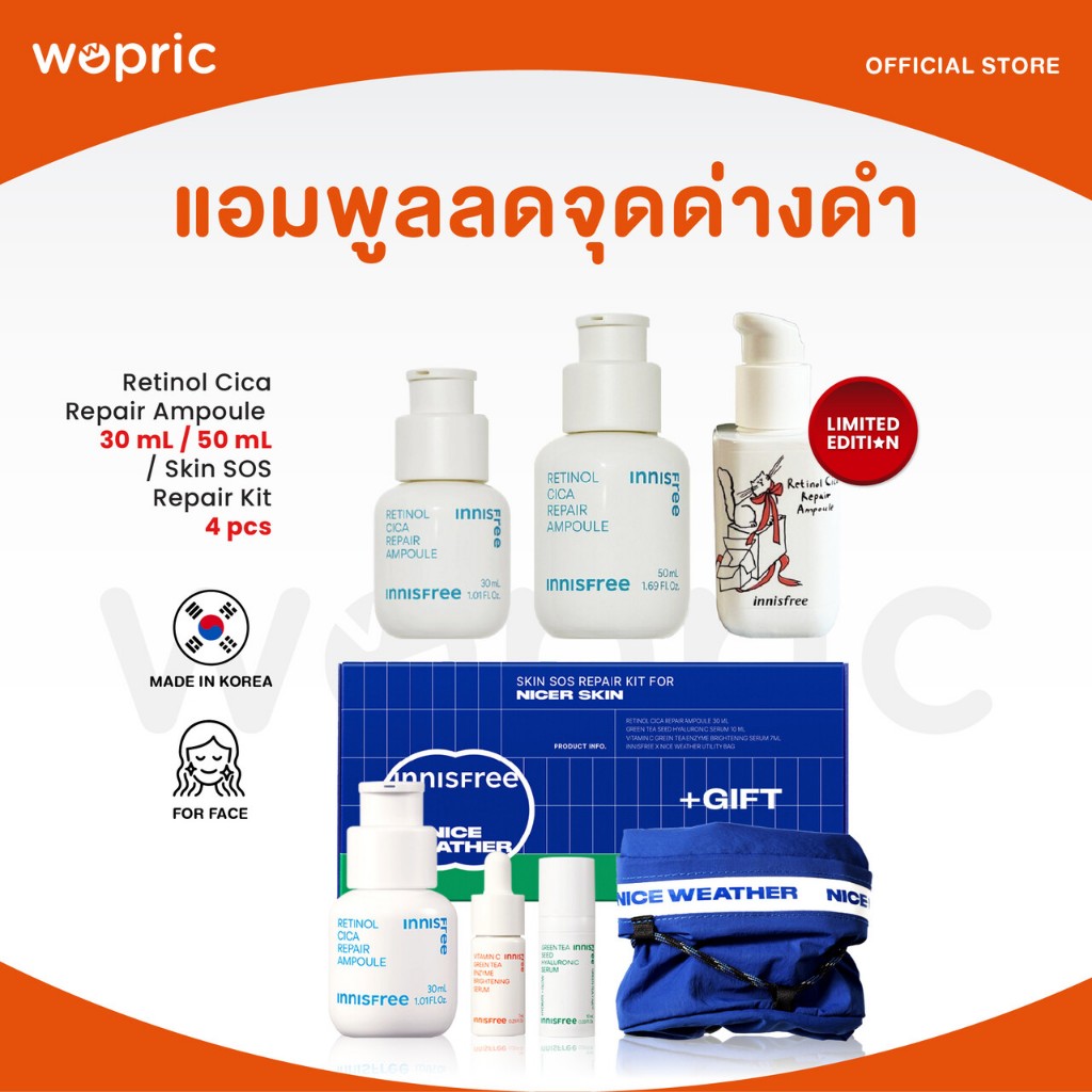แท้💯พร้อมส่ง Innisfree Retinol Cica Repair Ampoule 30mL /50mL /Skin SOS Repair Kit (4 pcs) แอมพูลจบทุกปัญหาผิว มีเซตพกพา
