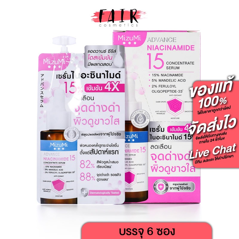 MizuMi Advance Niacinamide CSerum มิซึมิ แอดวานซ์ ไนอะซินาไมด์ เซรั่ม [6 ซอง] สูตรสีชมพู ลดเลือน หมองคล้ำ