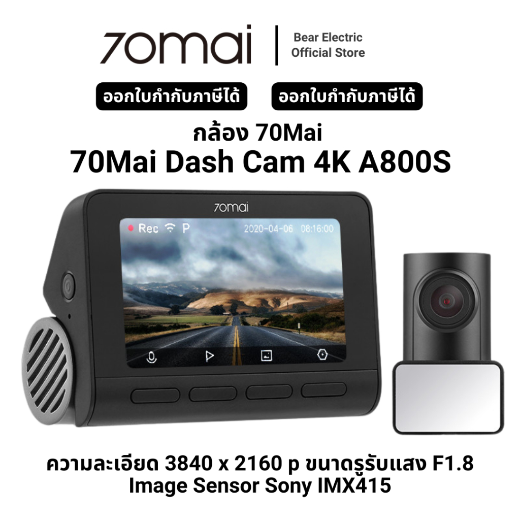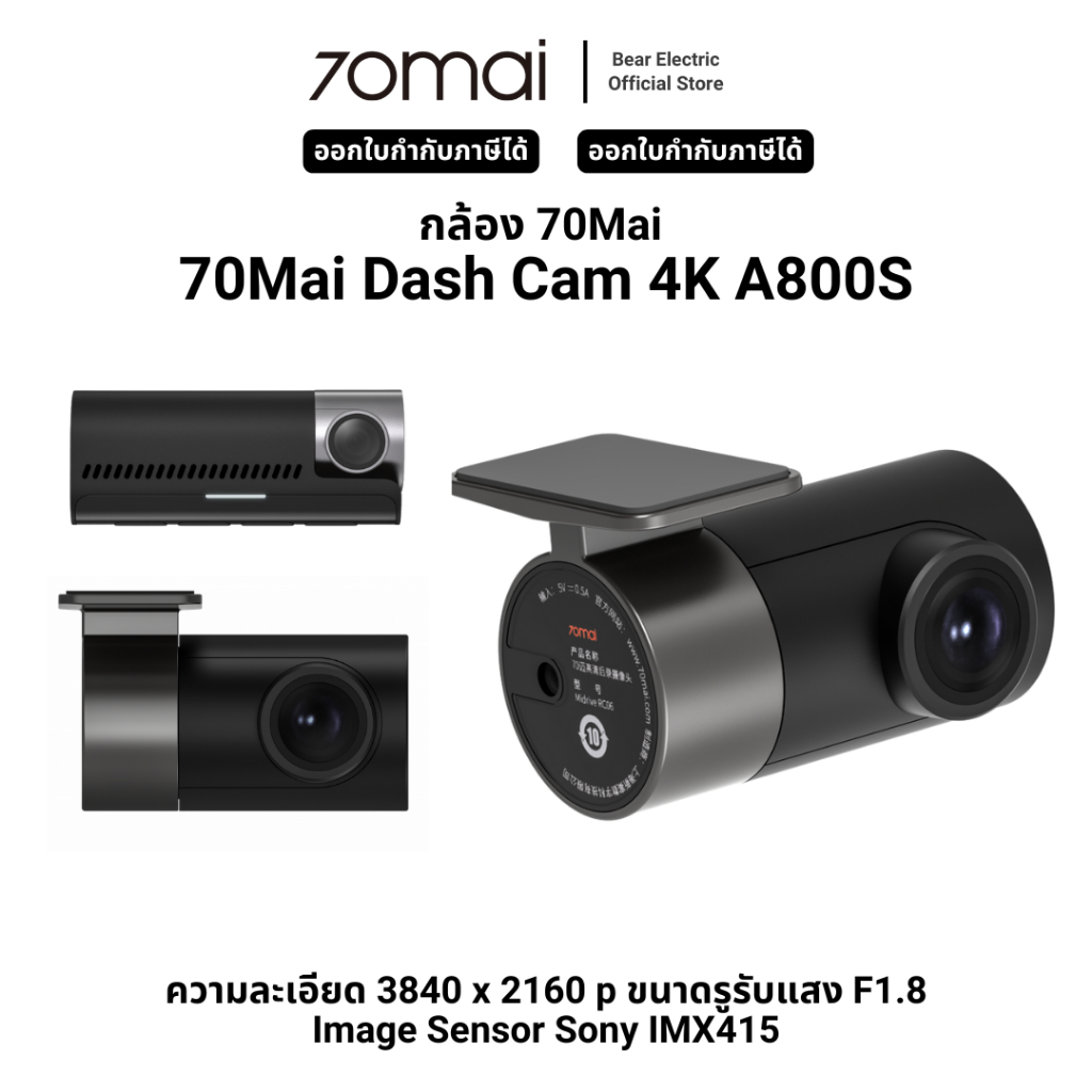 กล้องติดรถยนต์ 70Mai Dash Cam 4K A800S เลนส์กว้าง 140 องศา ประกันศูนย์ไทย 1 ปี
