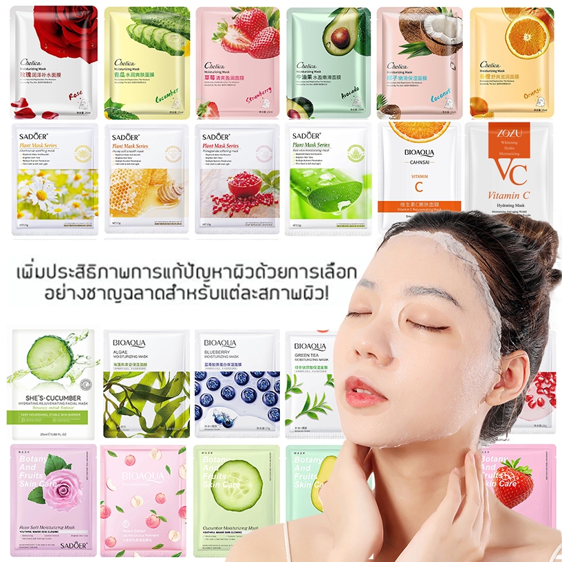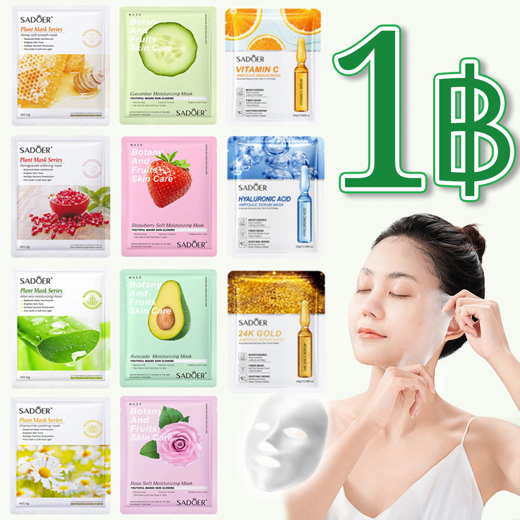 1฿ มีพร้อมส่ง แผ่นมาส์กหน้า Mask เพิ่มความชุ่มชื่นให้ผิวหน้า แผ่นมาสก์หน้า 25ml แผ่นมาสก์หน้าบำรุงผิว