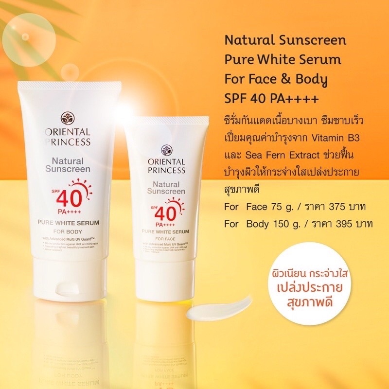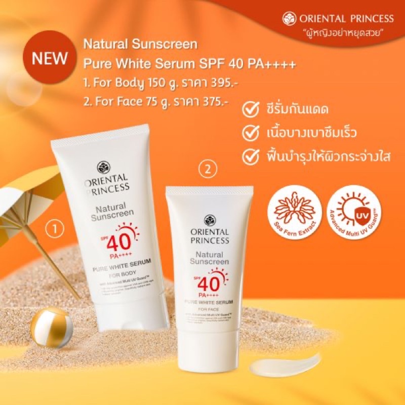 ขายถูก และของแท้ /กันแดดสำหรับหน้า Oriental Princess Natural Sunscreen UV Protection Face กันแดด ผิวหน้า