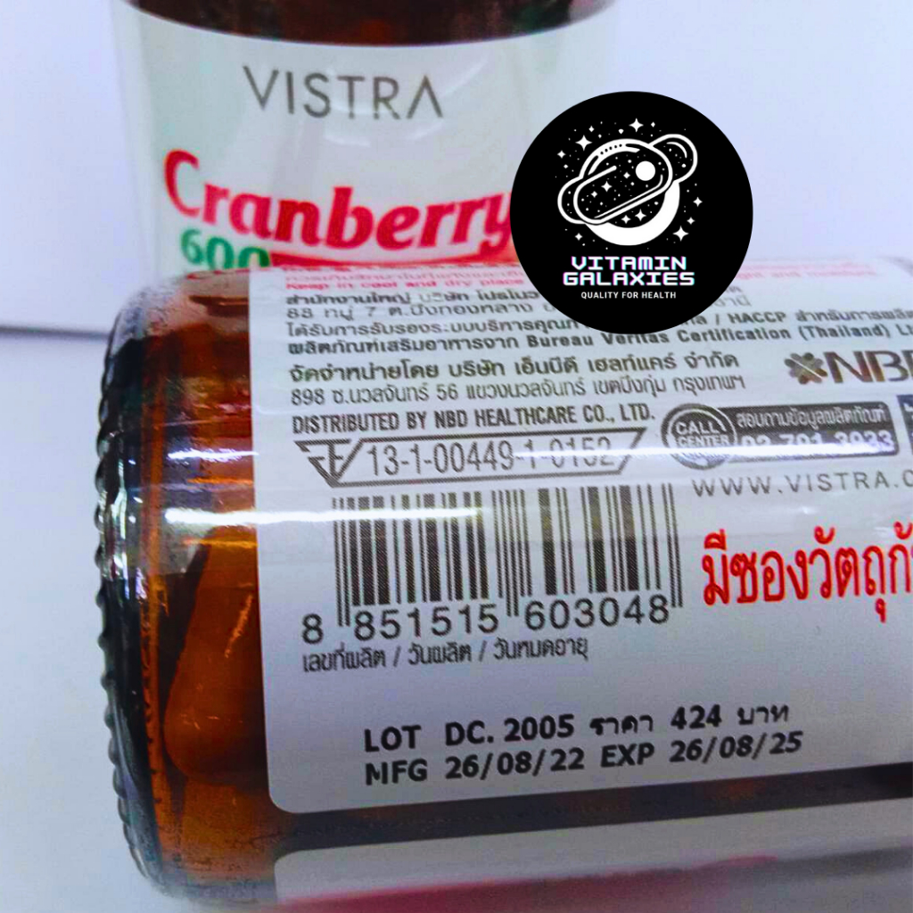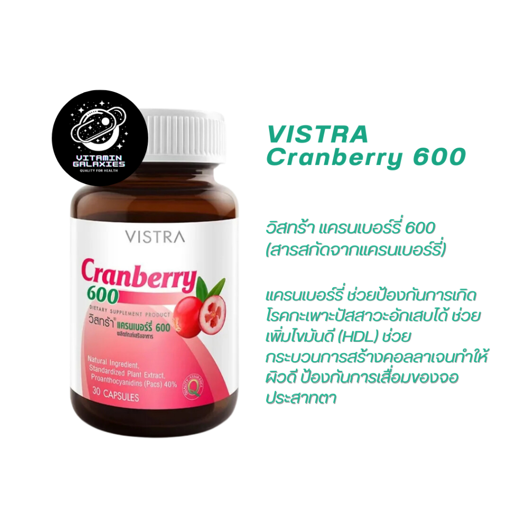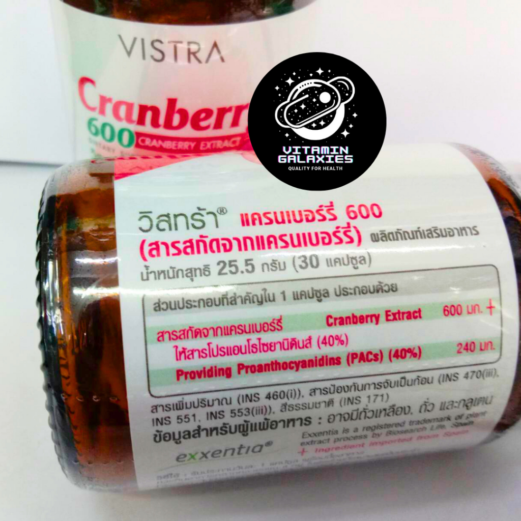 Vistra Cranberry 600 วิสทร้า แครนเบอร์รี่ 600 (30 Capsules)