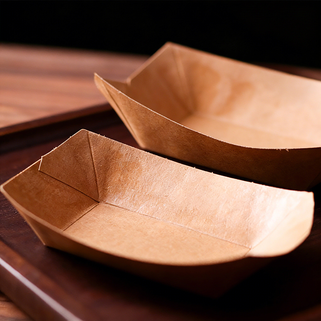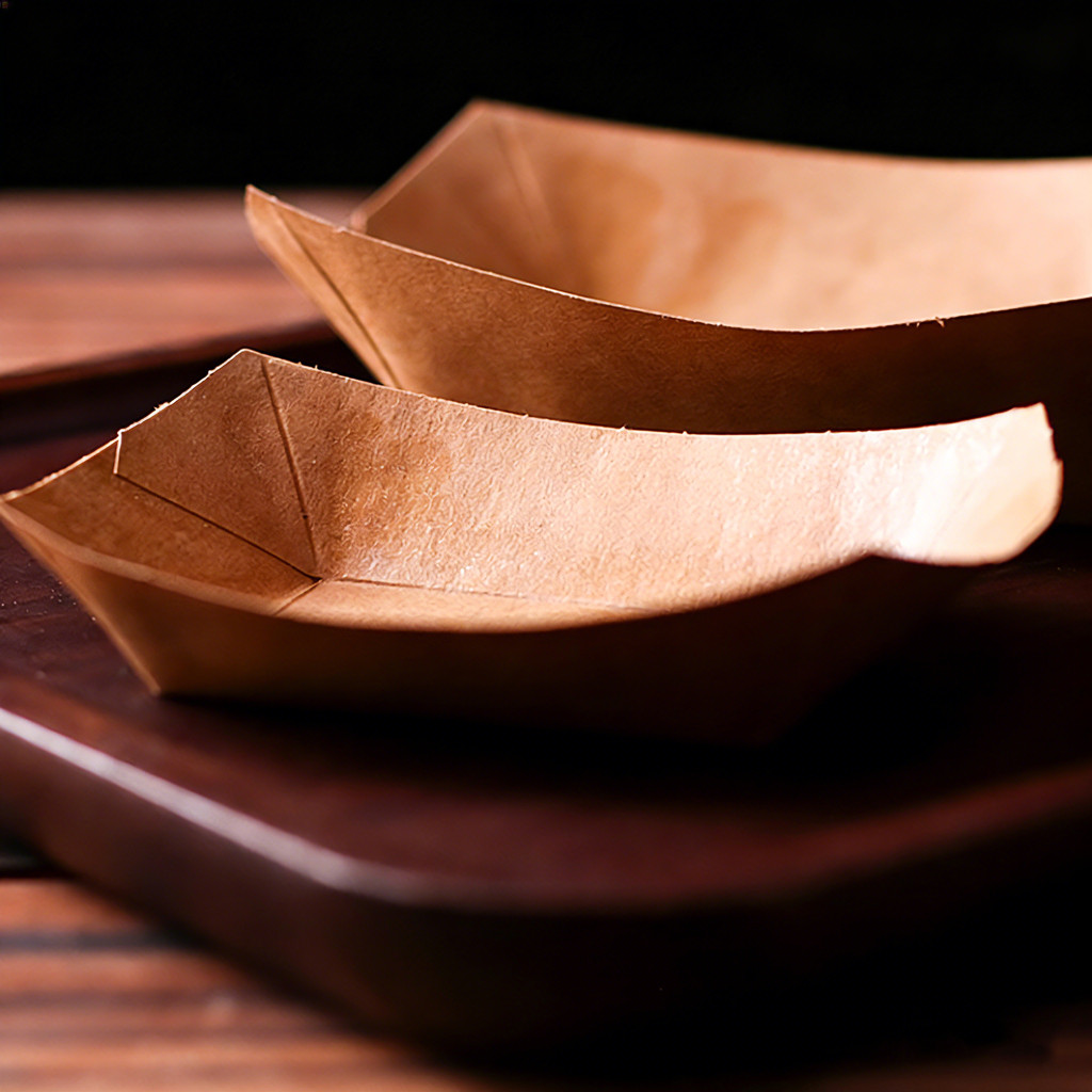 (50 ชิ้นต่อแพ็ค) ถาดใส่อาหารรูปเรือทำจากกระดาษคราฟท์ *ลอยน้ำได้* กระดาษคราฟท์สี ใช้แล้วทิ้ง มีหลายขนาดให้เลือก