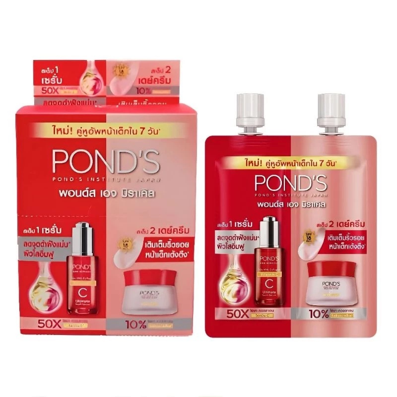(1 ซอง) Pond's พอนด์ส ไบรท์ มิราเคิล ครีม 5 สูตร ใหม่ (ปริมาณ 5-6-7 กรัม)