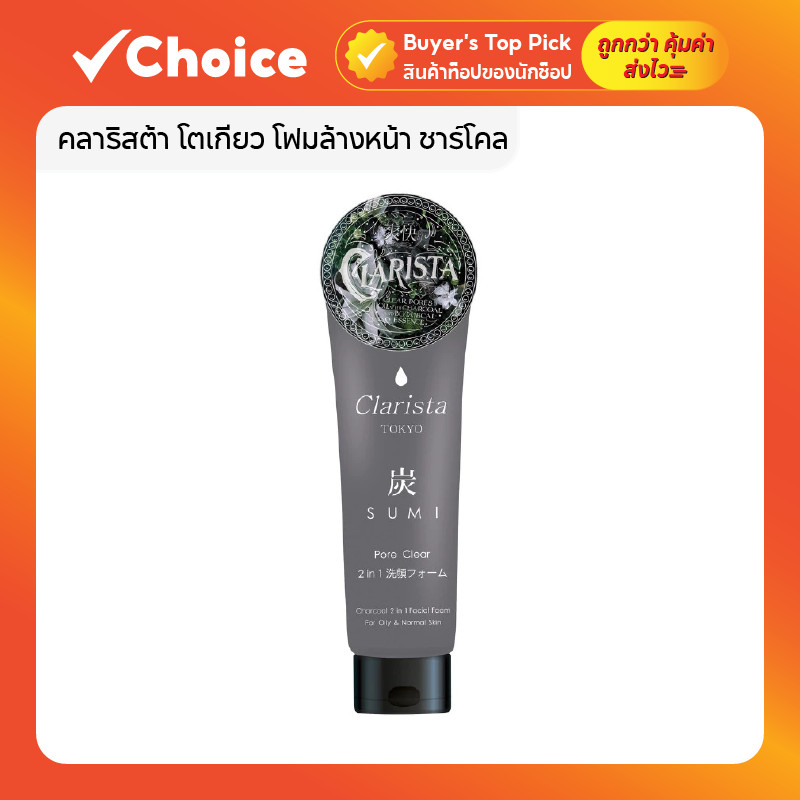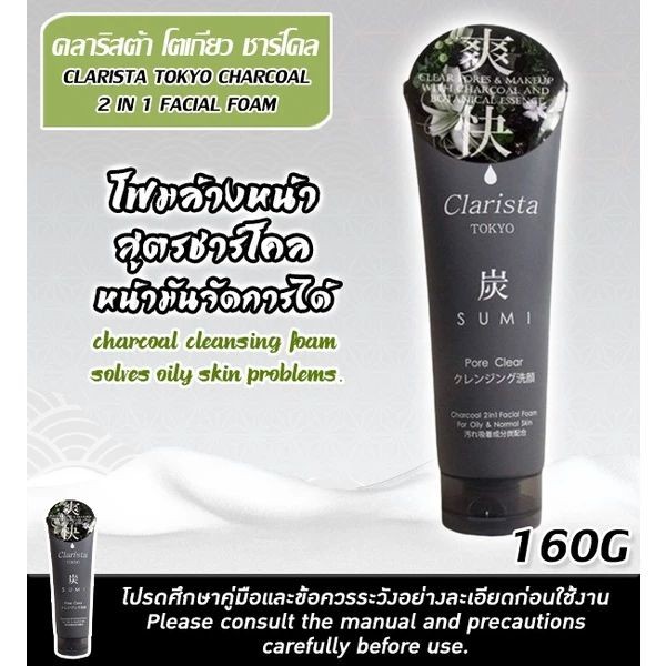 Clarista โฟมล้างหน้า Charcoal 160g (หลอดเทา) ทำความสะอาดผิวหน้าและเครื่องสำอาง