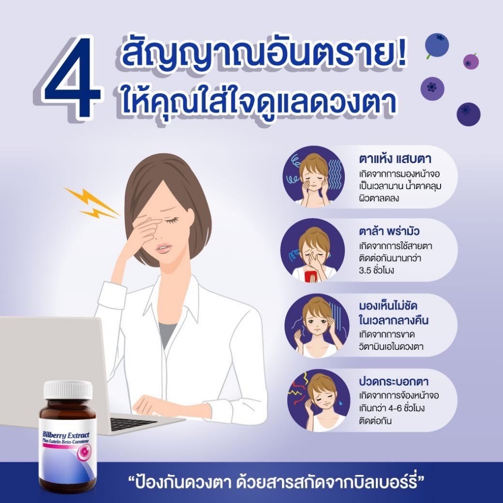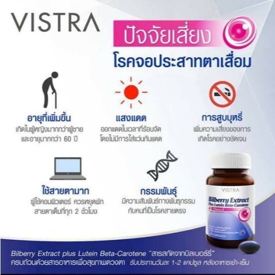 VISTRA Bilberry Extract Plus Lutein Beta-carotene & Vitamin E (14/30/60 แคปซูล) ลูทีน บิลเบอร์รี่บำรุงดวงตา