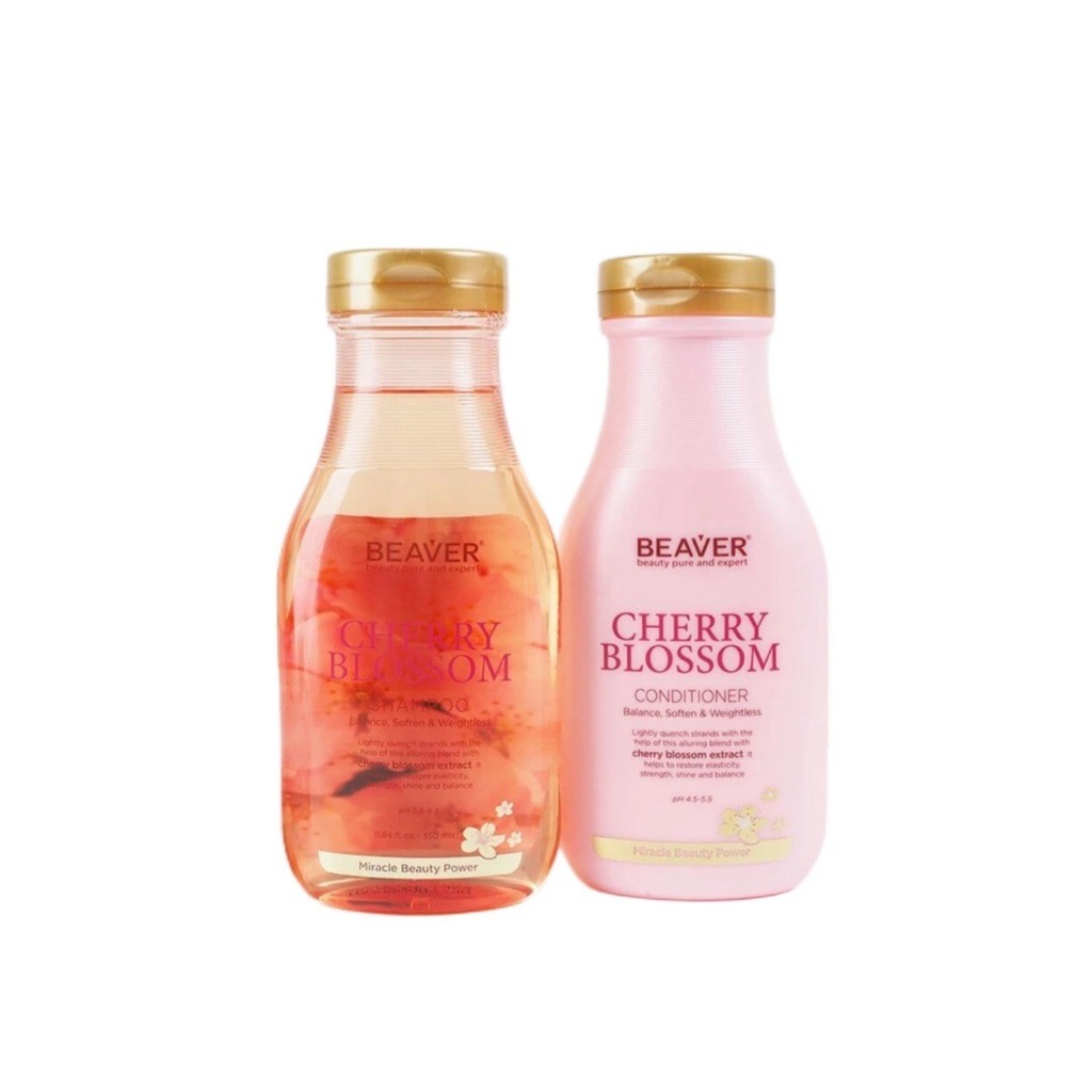 ❤️ปลอมคืนเงิน❤️Beaver Cherry Blossom Shampoo-Conditioner 350 ml ช่วยทำให้ผมกลับมาแข็งแรง หนานุ่ม