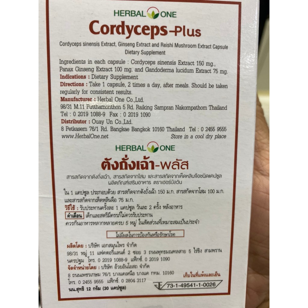 Herbal one Cordyceps-Plus 30 เม็ด อ้วยอัน ถังเช่า ตังถั่งเฉ้า-พลัส เฮอร์บัล วัน [5542]