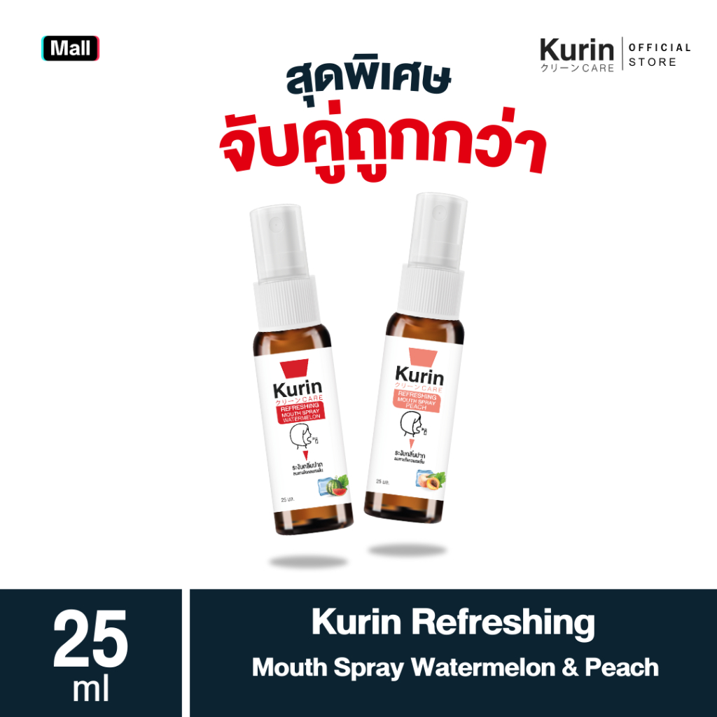 จับ คู่ Kurin care Refreshing Mouth Spray Peach & Watermelon 25 ml./ขวด