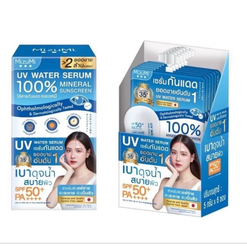 ส่งฟรี/มีไลฟ์ Mizumi Uv Water Serum 100% Mineral SunscreenSPF50+PA+++ เซรั่มกันแดด เบาดุจนํา สบายผิว 5 กรัม