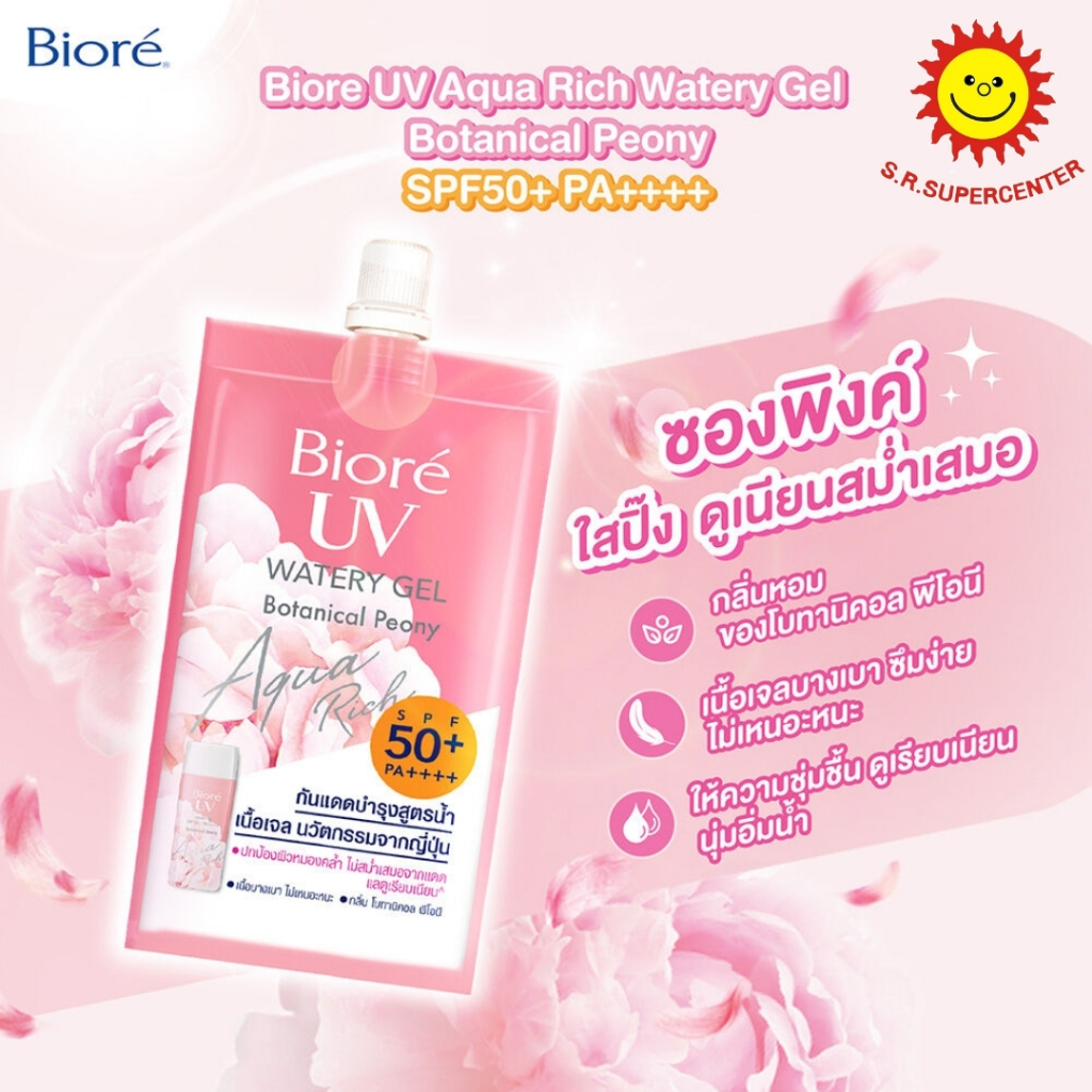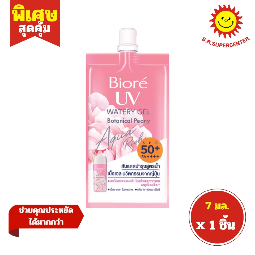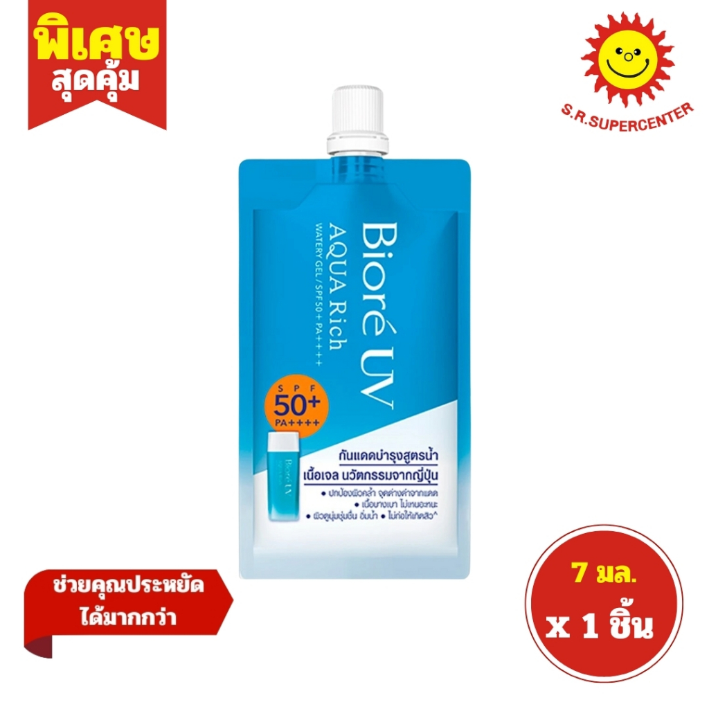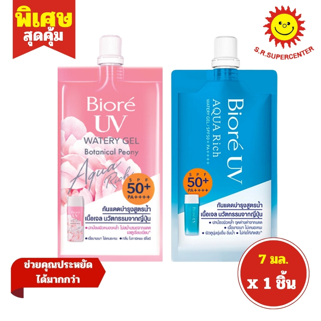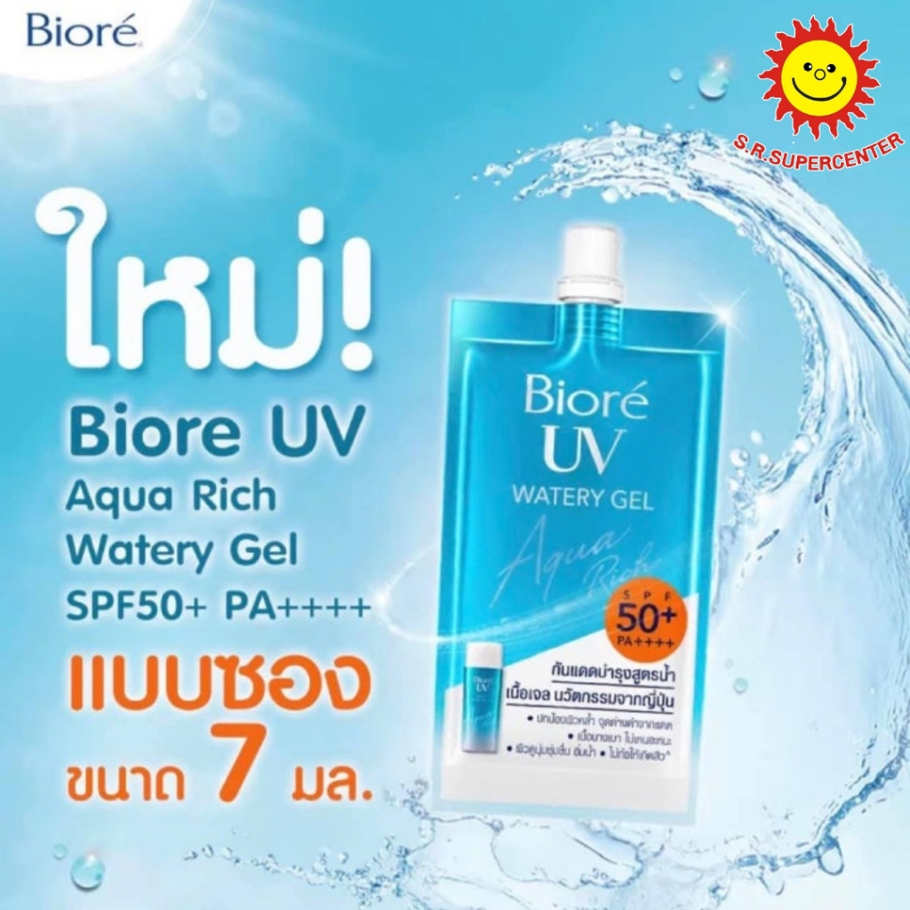 [ 1ซอง ] Biore UV บิโอเร ยูวี อะควาริช วอเตอร์ เจล กันแดดบำรุงสูตรน้ำ เนื้อเจล ขนาด 7 มล. (1ซอง) คละสูตร