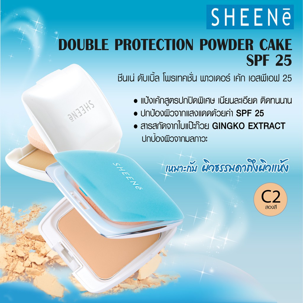 SHEENE DOUBLE PROTECTION POWDER CAKE SPF25 แป้งเค้กเนื้อปกปิดพิเศษ เนียนละเอียด ติดทนนาน