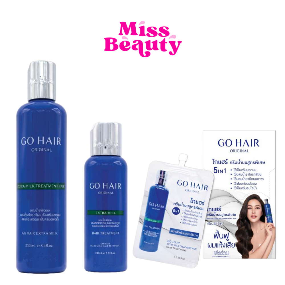 (น้ำเงิน) Go hair โกแฮร์ ครีมน้ำนม สูตรพิเศษบำรุงเส้นผม Extra Milk Treatment Hair 100/250 ml.