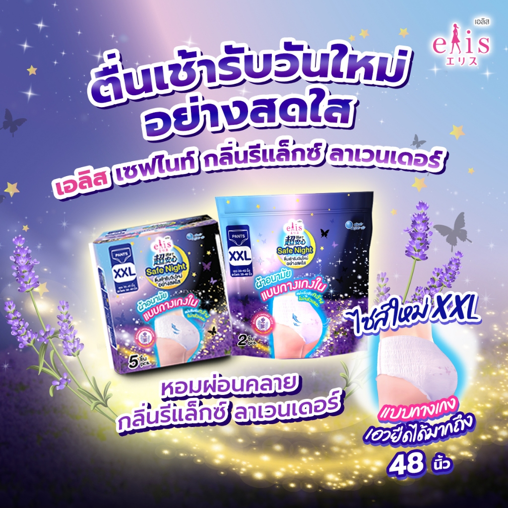 เอลิส เซฟไนท์ ผ้าอนามัยแบบกางเกงใน ขนาด XXL แพ็ค 5 ชิ้น/Elis Safe Night Relaxed Lavender Scent Pants Size XXL 5P