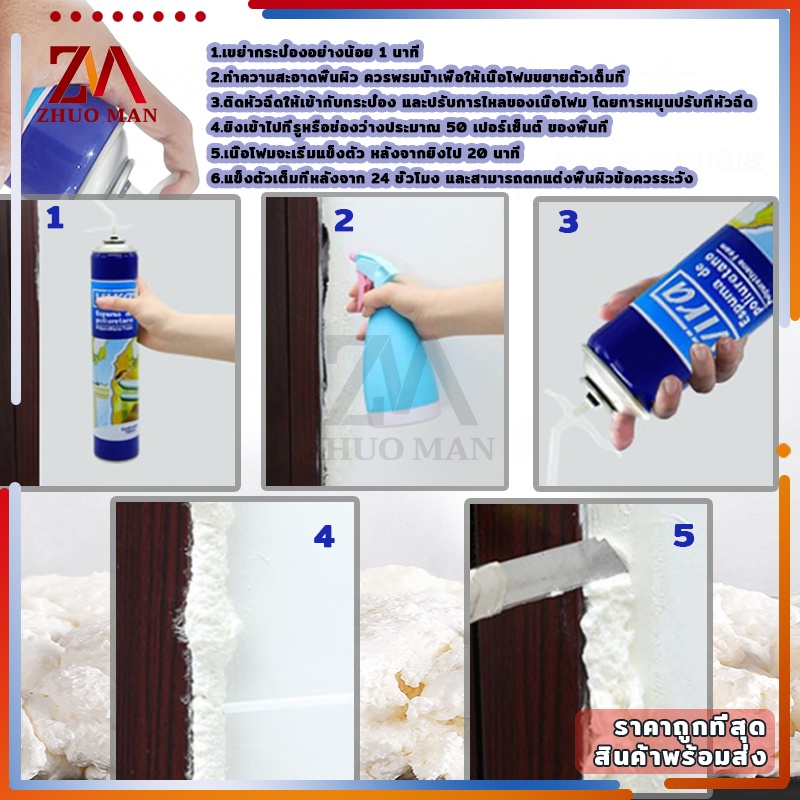 สเปรย์พียูโฟม สเปรย์ PUโฟม โฟมอุดรอยรั่ว พียูโฟมกระป๋อง สเปรย์โฟมเอนกประสงค์ โฟมอุดรอยร้าว ช่องว่างประตู หน้าต่าง หลังคา