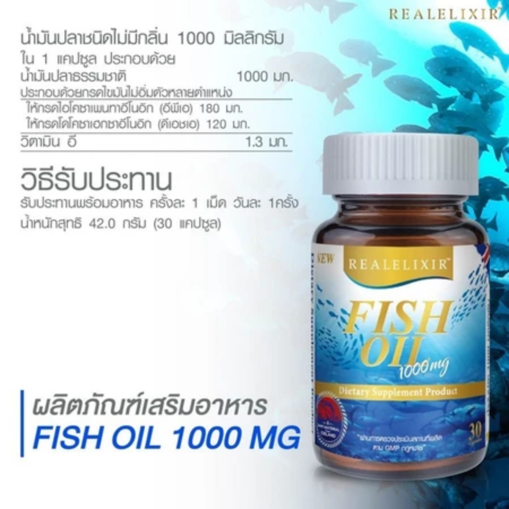 Real Elixir FISH OIL (น้ำมันปลาสกัด) 1,000 mg. 30 แคปซูล บำรุงประสาทและสมอง ของแท้ ราคาถูก