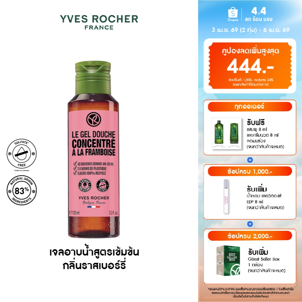 อีฟ โรเช Yves Rocher The Raspberry Concentrated ShowerGel100มล.เจลอาบน้ำสูตรเข้มข้นกลิ่นราสเบอร์รี่อาบหอมฟินบูสผิวนุ่มใส