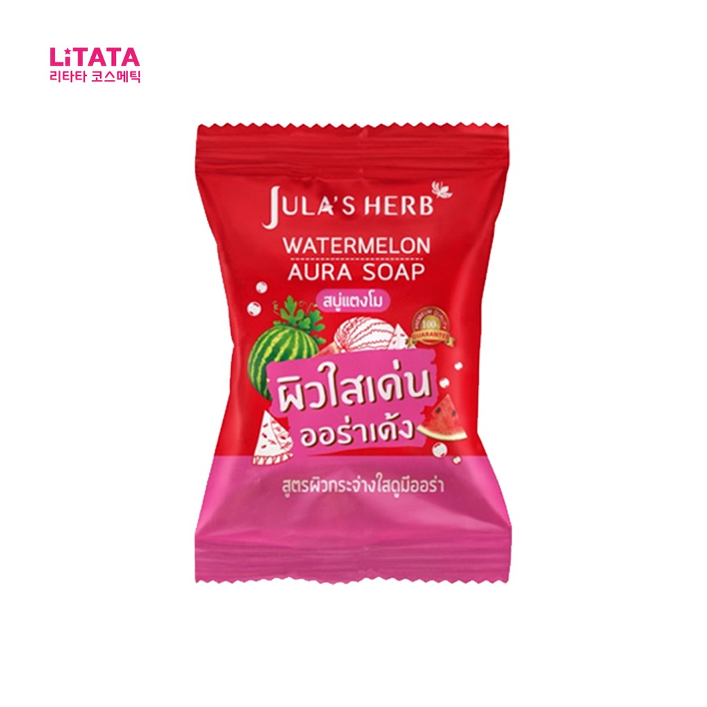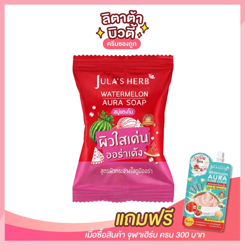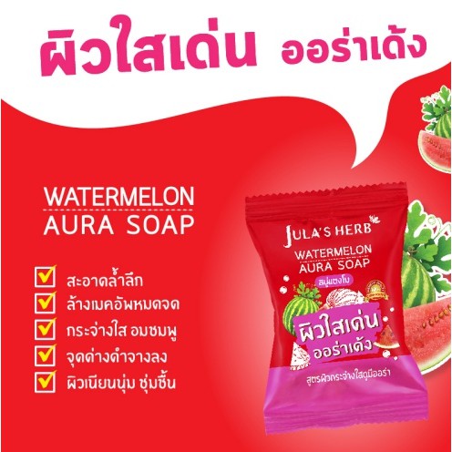 [ 1 ก้อน ] สบู่แตงโม จุฬาเฮิร์บ วอเตอร์เมลอน ออร่า โซฟ Jula’s Herb Watermelon Aura Soap 60 กรัม